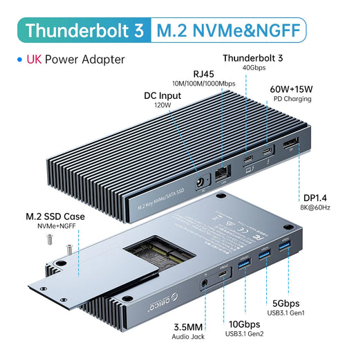 View full detailsORICO M.2 NVMe NGFF SSD Case with Thunderbolt 3 Dock Station Splitter Type C USB USB3.1 40Gbps Adpter HDMI-compatible SATA HUB