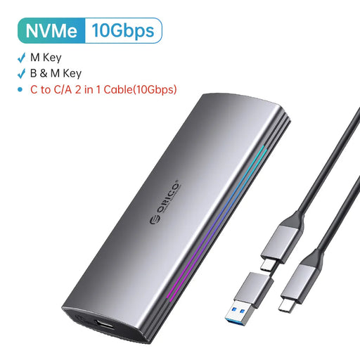 View full detailsORICO RGB 10Gbps M2 NVMe SSD Enclosure Aluminum USB3.1 Gen2 Case for M Key M&B Key Solid State Drive for Gamer Video Editing