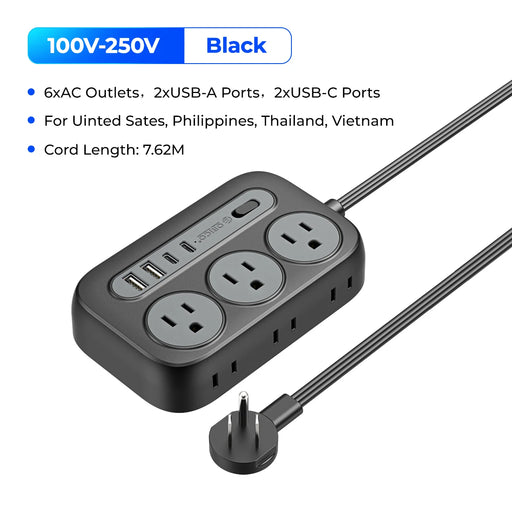 View full detailsORICO Power Strip with 6 Sockets 2 USB 2 Type C Multi-Size Extension Cord (1250W/10A) for Home, Outdoor, Travel Sockets