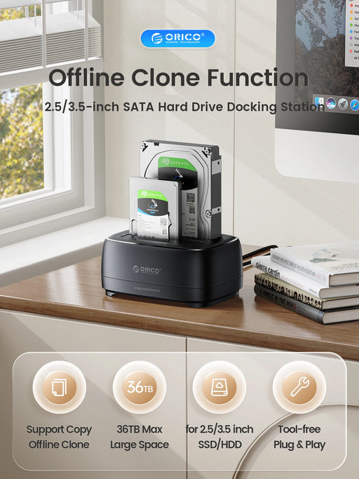 View full detailsORICO Offline Clone Hard Drive Docking Station USB3.0 & Type-C 5Gbps Dual-bay Hard Disk Enclosure 2.5/3.5 Inch HDD/SSD