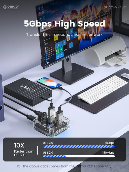 View full detailsORICO Transparent Usb C Hub 4 Port Expansion With Power Supply Interface Usb 3.2 Protocol High Speed Transmission OTG Dapter