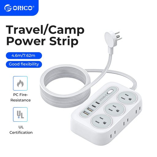 View full detailsORICO Power Strip Travel Adapter Smart US Plug Multiple Extension Socket with 2 USB Ports Type C Fast Charge for Travel Office
