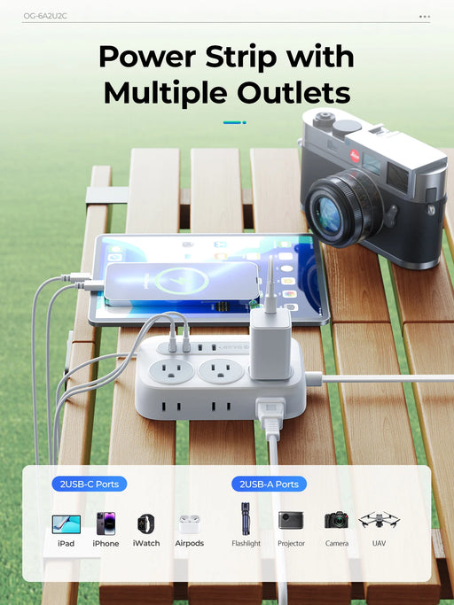 View full detailsORICO Power Strip with 6 Sockets 2 USB 2 Type C Multi-Size Extension Cord (1250W/10A) for Home, Outdoor, Travel Sockets