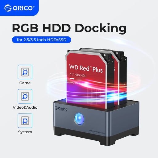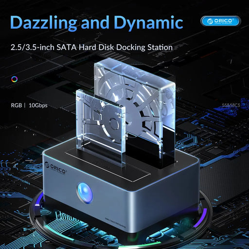 View full detailsORICO RGB Hard Drive Station Type-C Aluminum 2.5/3.5 Inch HDD Case RGB Cyberpunk Design 10Gbps Fast Speed Hard Disk Bay for PC