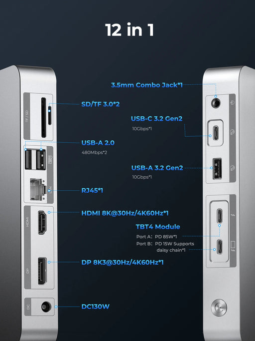 View full detailsORICO Thunderbolt 4 Docking Station Type C to HDMI-compatible Adapter 8K@30Hz USB 3.2 Gen2 HUB Splitter for MacBook Mac Windows
