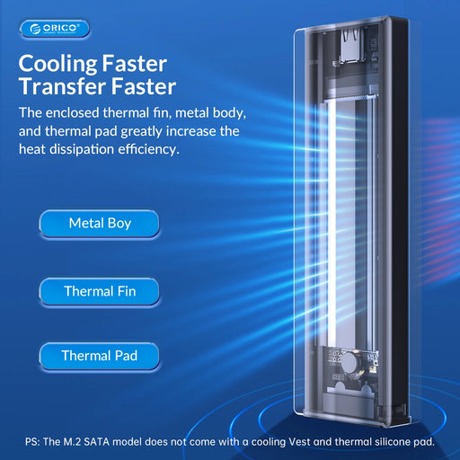 View full detailsORICO Tool Free Aluminum M2 SATA SSD Case SATA 6Gbps NVMe 10Gbps PCIe Type C M.2 SSD Enclosure B&M Key Solid State Drive Case