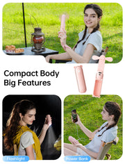 Features: Mini Handheld Fan with Flashlight and Power Bank Features