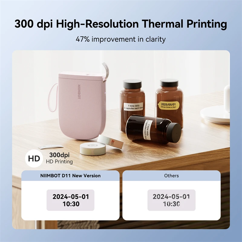 【2024 New Version】With its 300 dpi upgraded resolution, D11 new version thermal label printer let you create clearer words, images.Just half size of the traditional labeling machine, get smaller and smarter and you can use it anytime and anywhere.