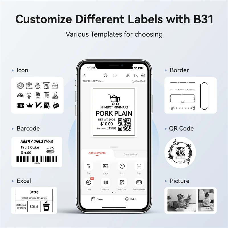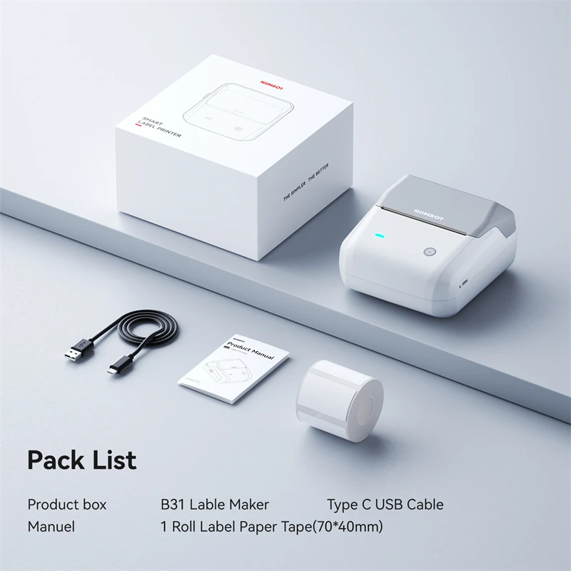 NIIMBOT B31 Thermal Label Printer Print Width 20-77mm Wireless Barcode Sticker Maker Pocket Label Maker for Business