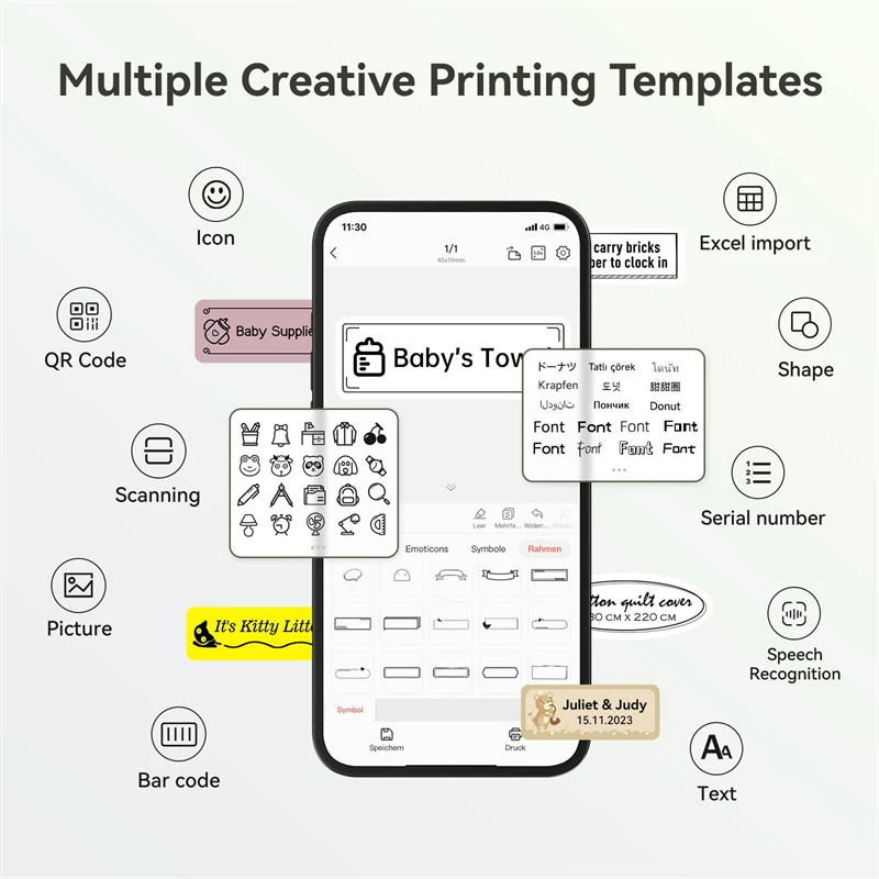 Our free NIIMBOT APP have functions like automatic templates matching, scan, image recognition, batch printing, serial number are offered, 20+ fonts, 1000+ icons, 100+ borders are provided for custom label designs.