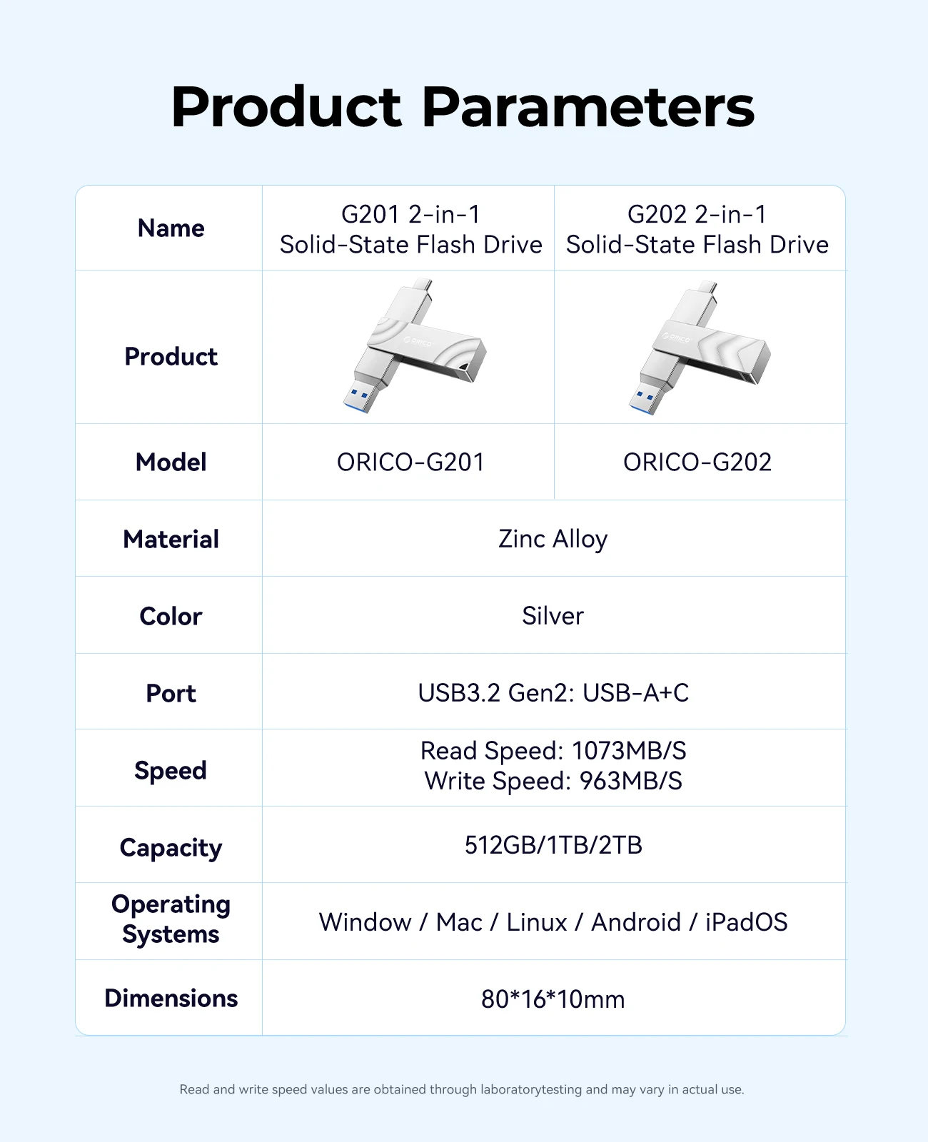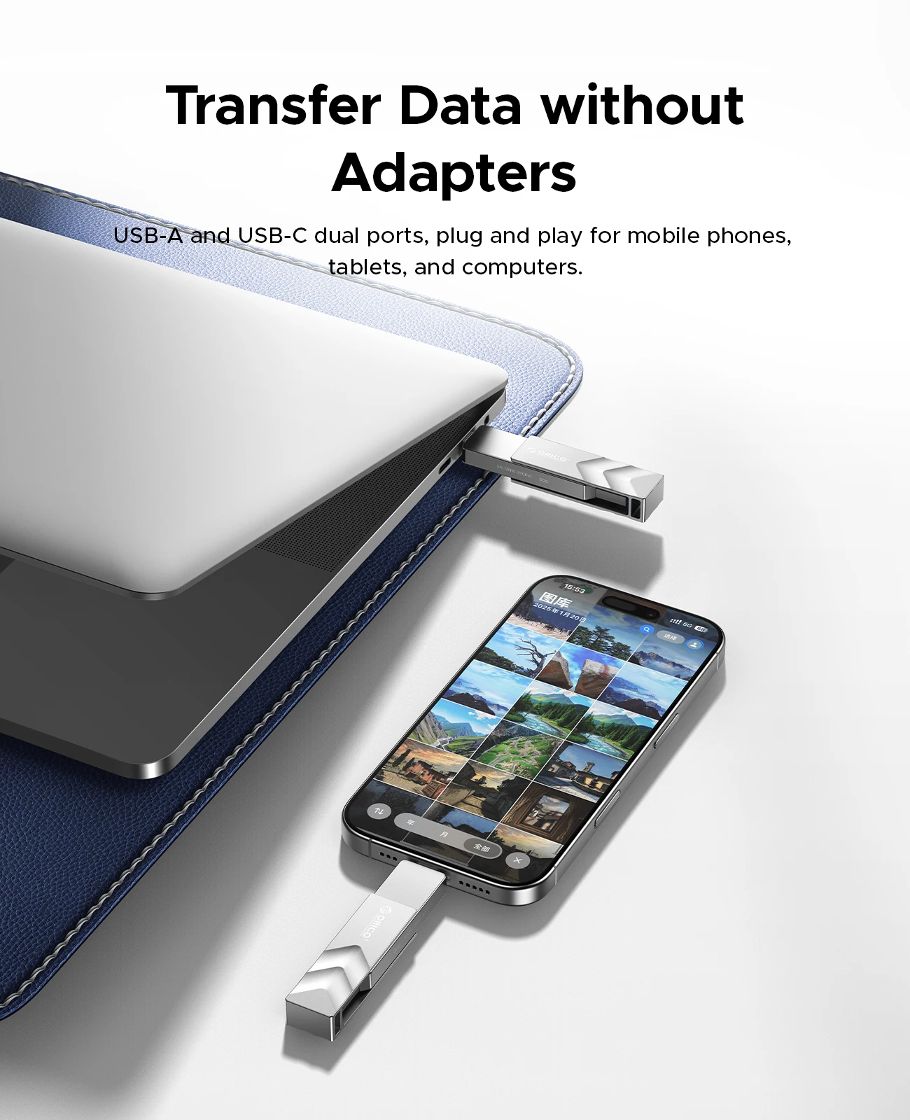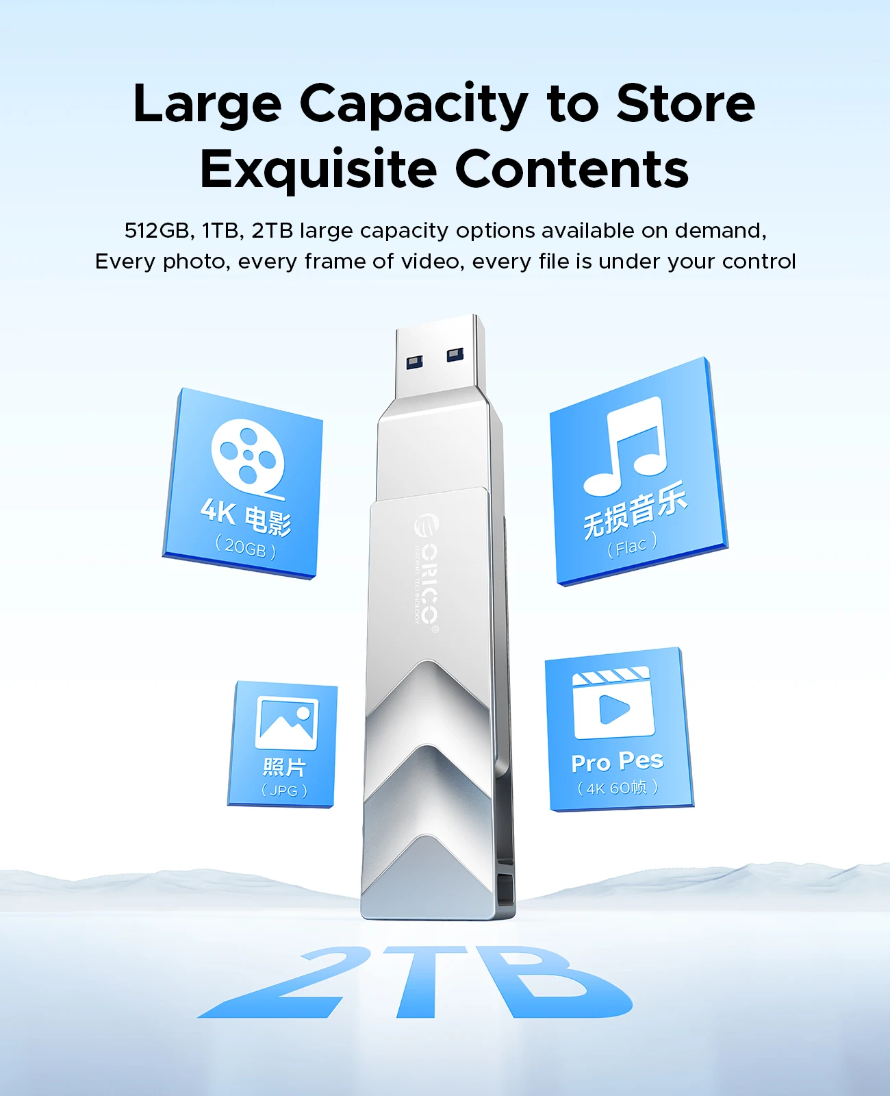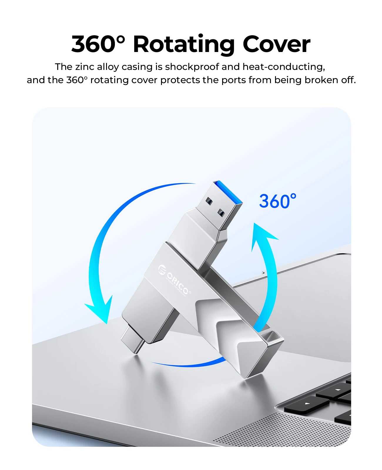 ORICO 512GB Dual Flash Drive 2-in-1 USB C/A 3.2 Gen2 Flash Drive Speed Up to 10Gbps 1073MB/s for iPhone 15/Android/Tablet/Laptop