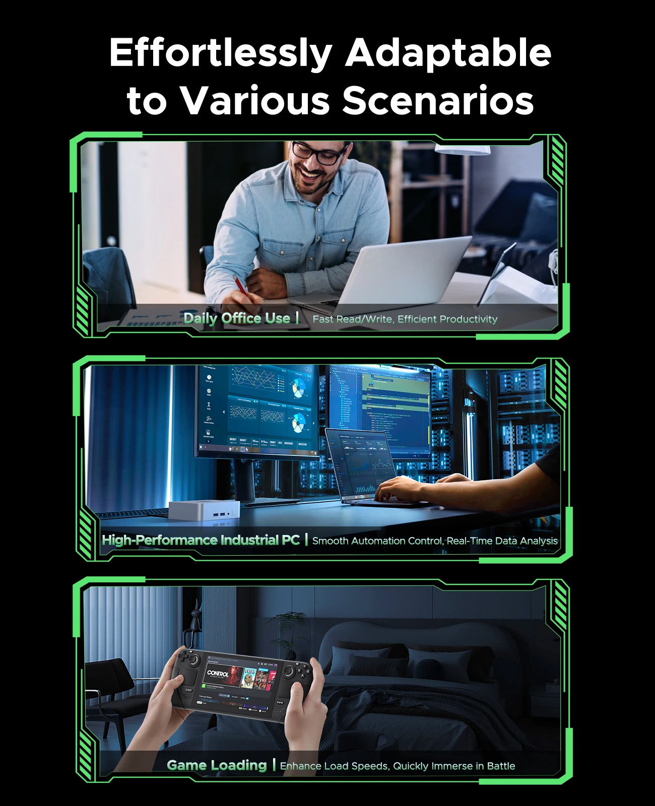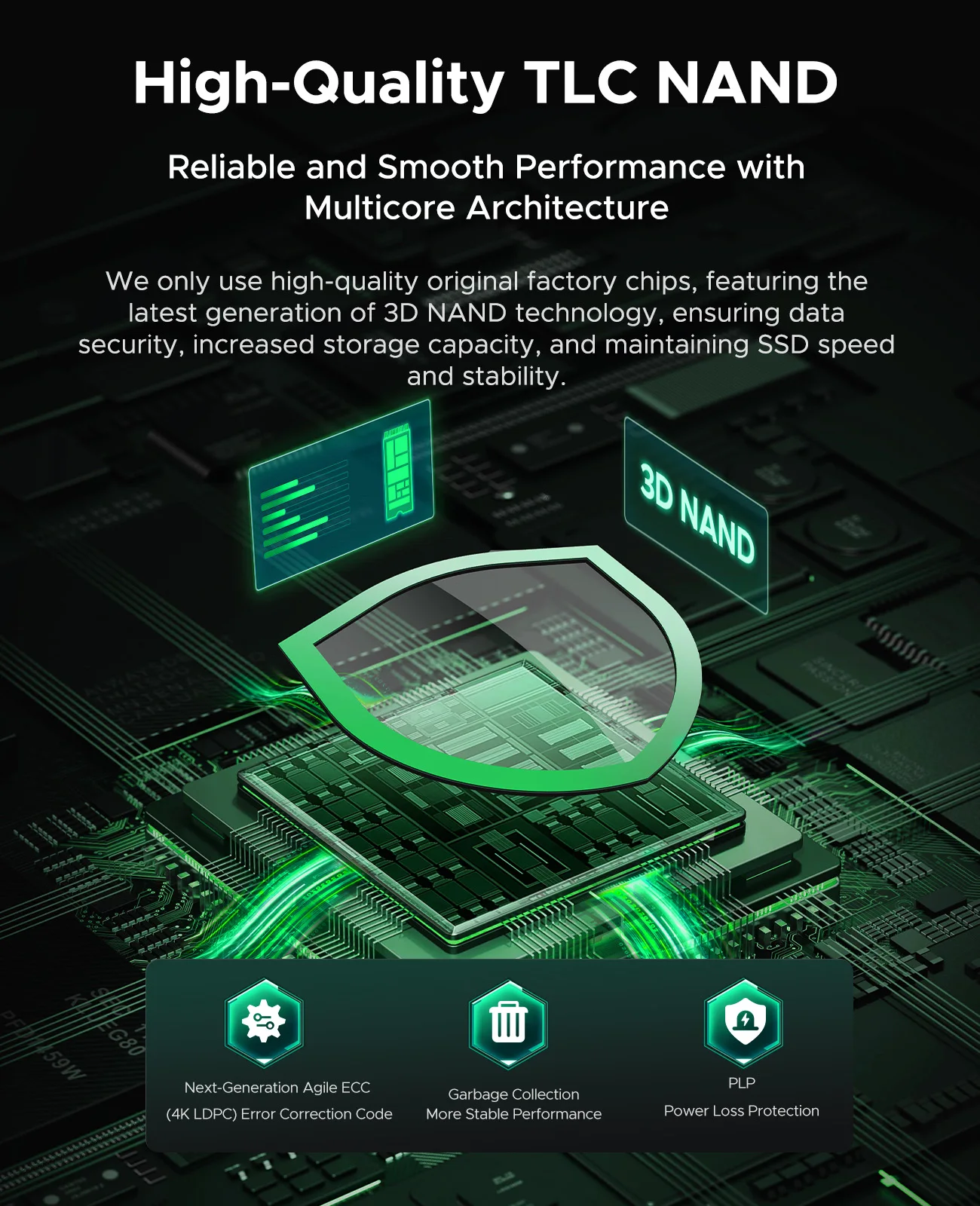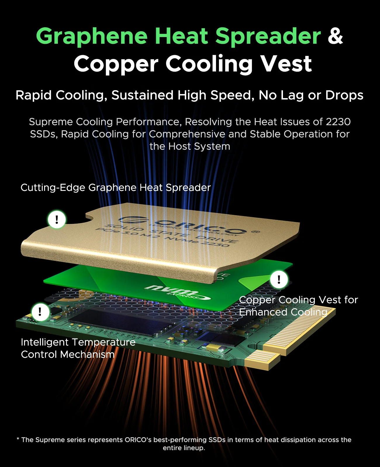 High-performance controller with smart temperature control and graphene heat dissipation. Keeps SSD fast under heavy load.