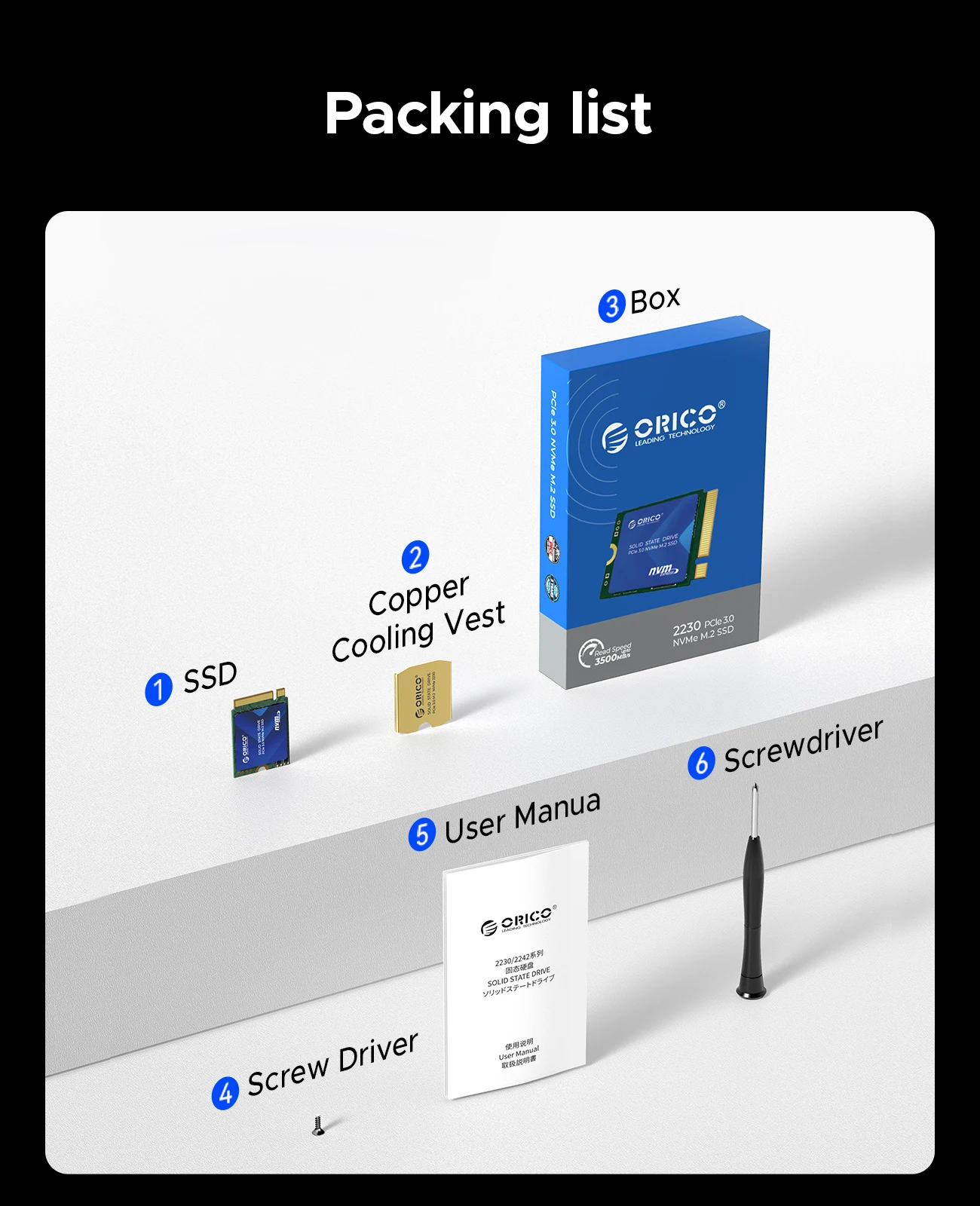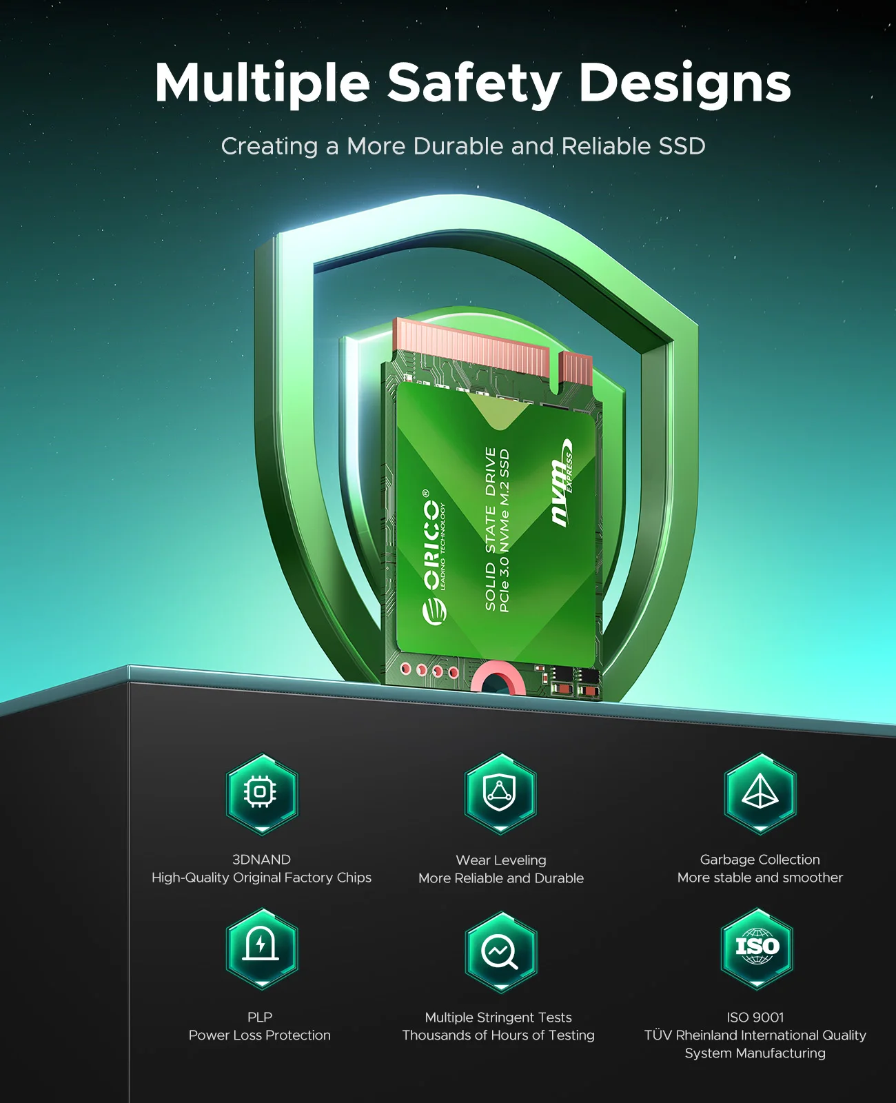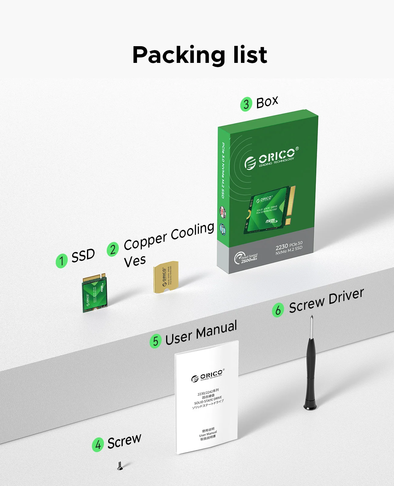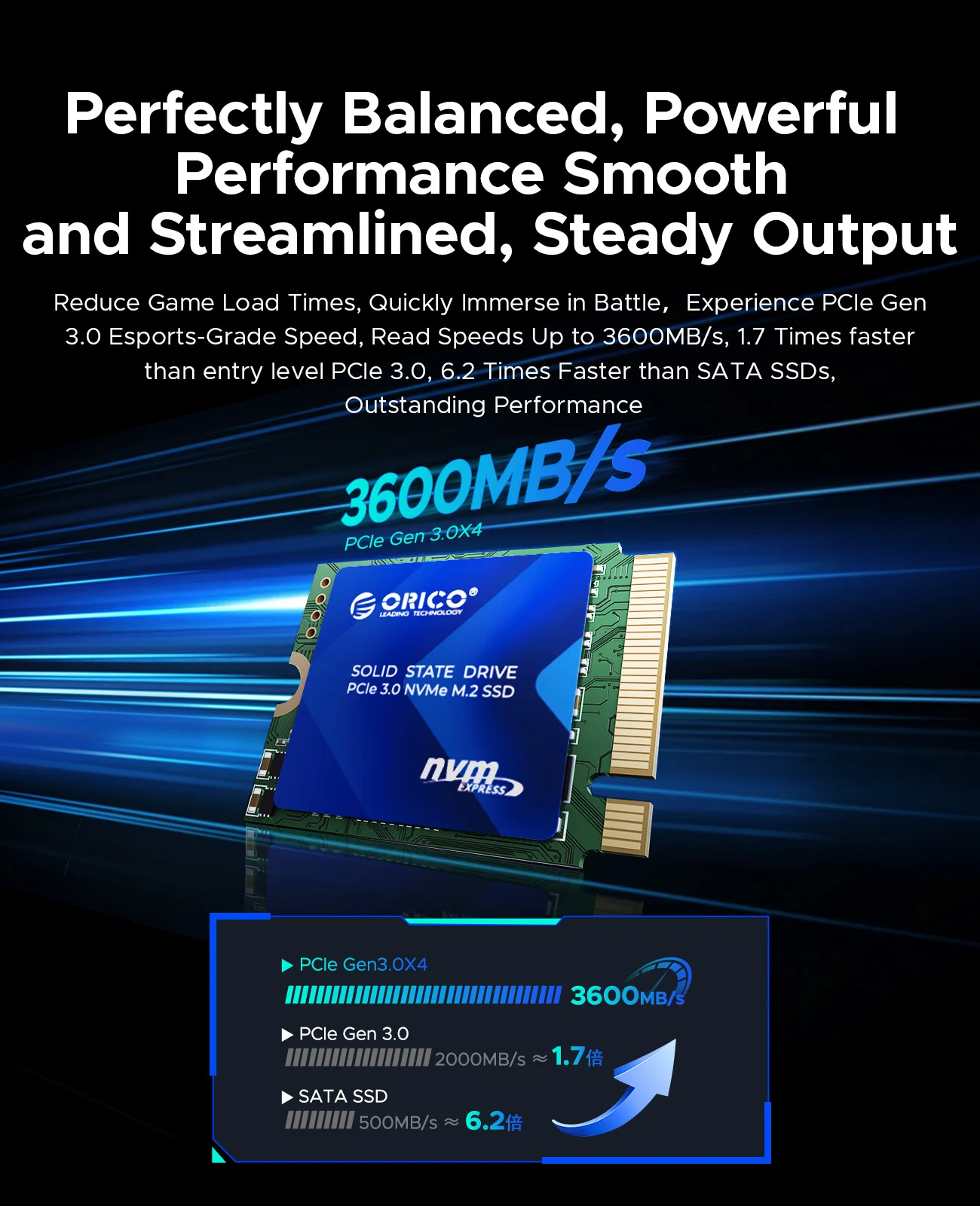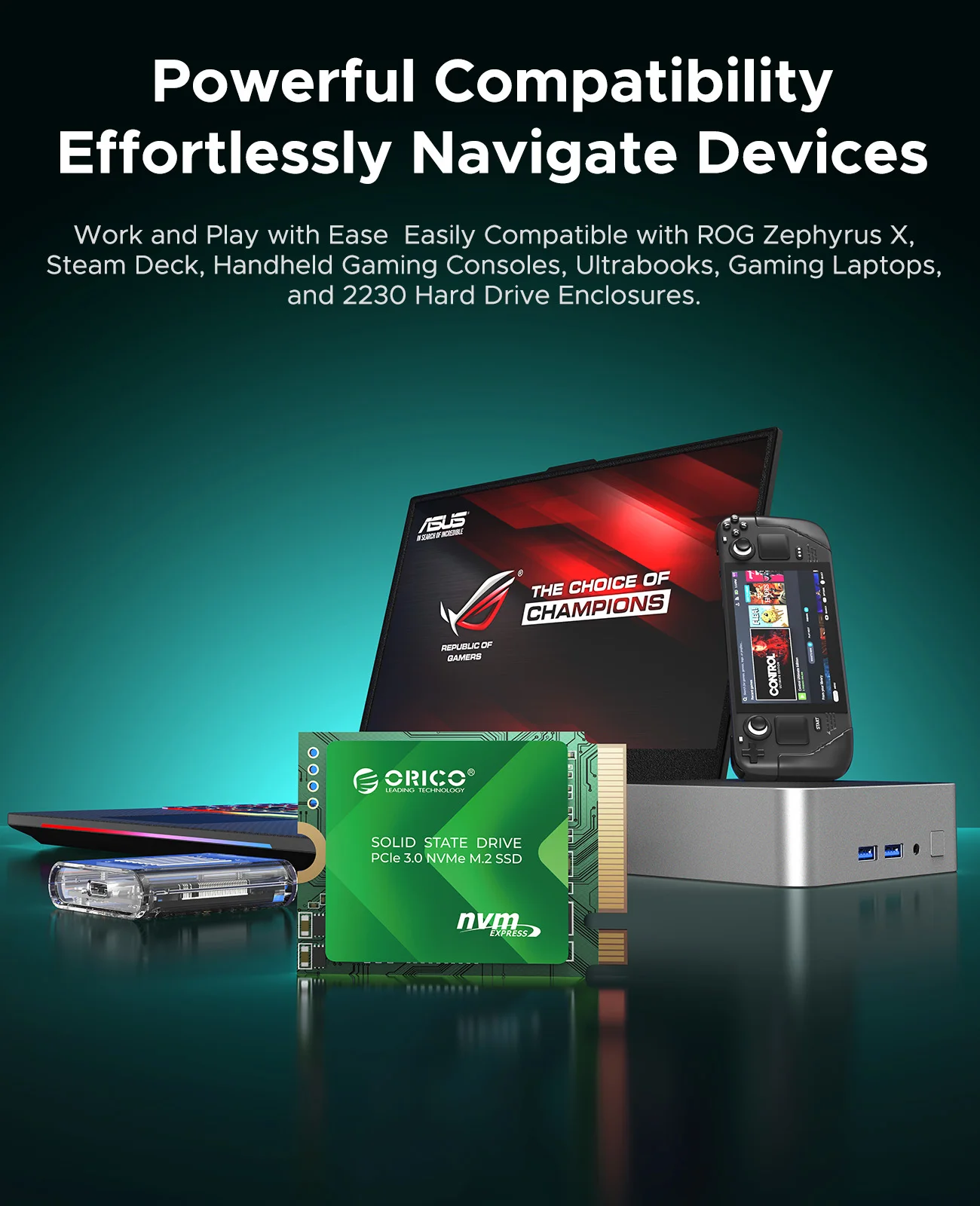 ORICO M.2 2230 SSD 256GB NVMe PCIe Gen 3.0x4 Internal Solid State Drive TLC 3D NAND Up to 2500MB/s for Steam Deck D10 2230