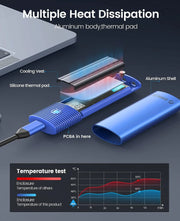 This ultra-compact NVMe SATA case is both portable and durable, which is very suitable for driving. Internal SSD is firmly using rubber fastener, and it is not easy to pop up at will.
