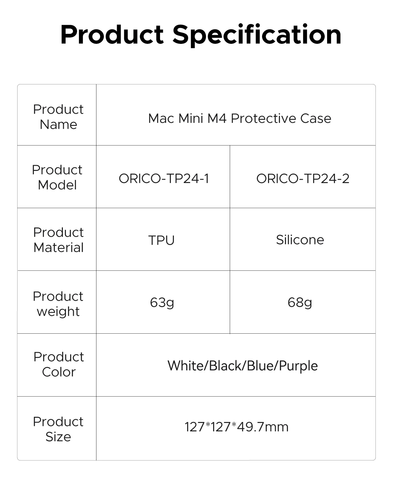 ORICO Mini Case for Mac Mini M4/M4 Pro is an easy-to-install wear-resistant waterproof silicone case