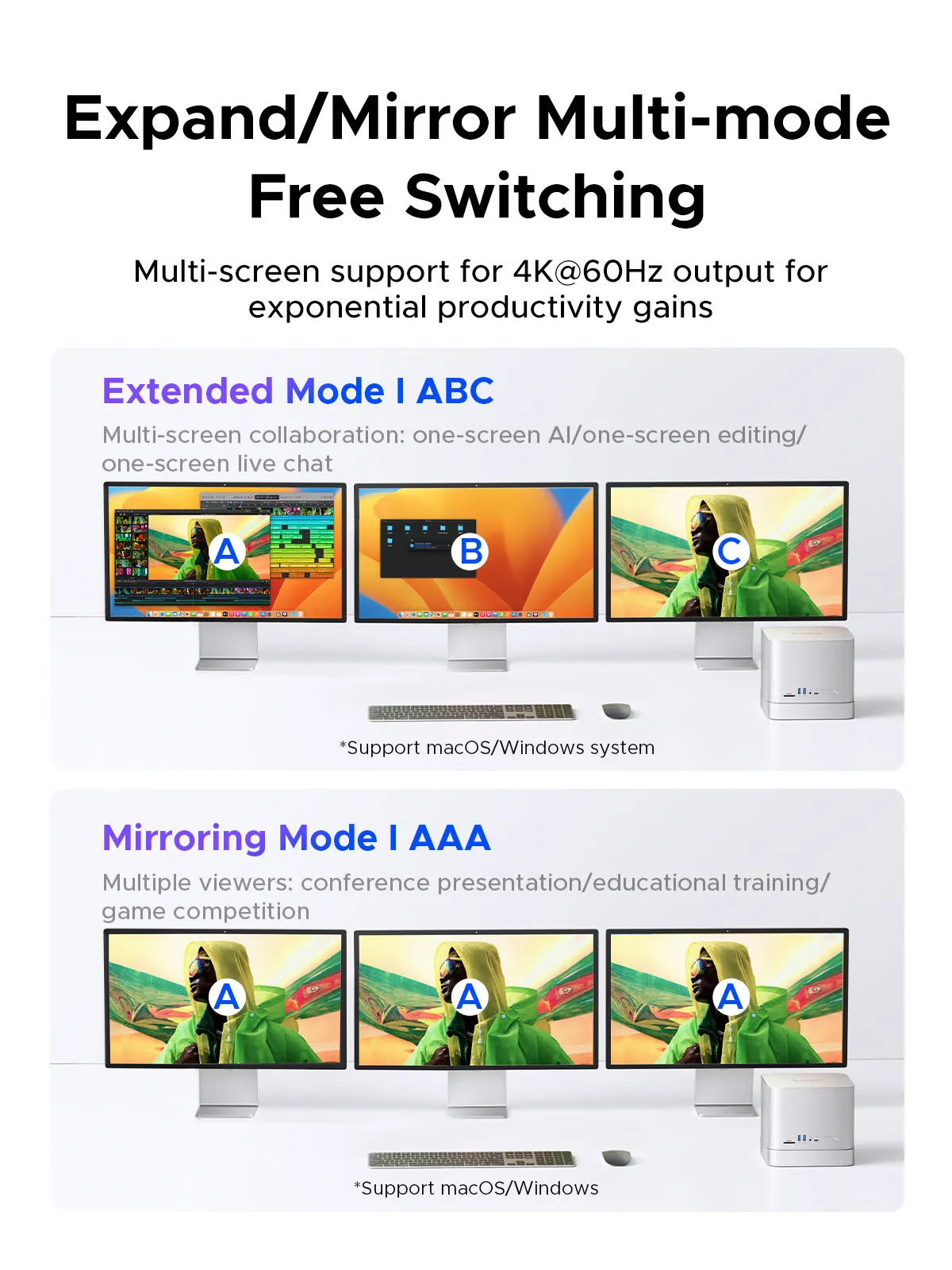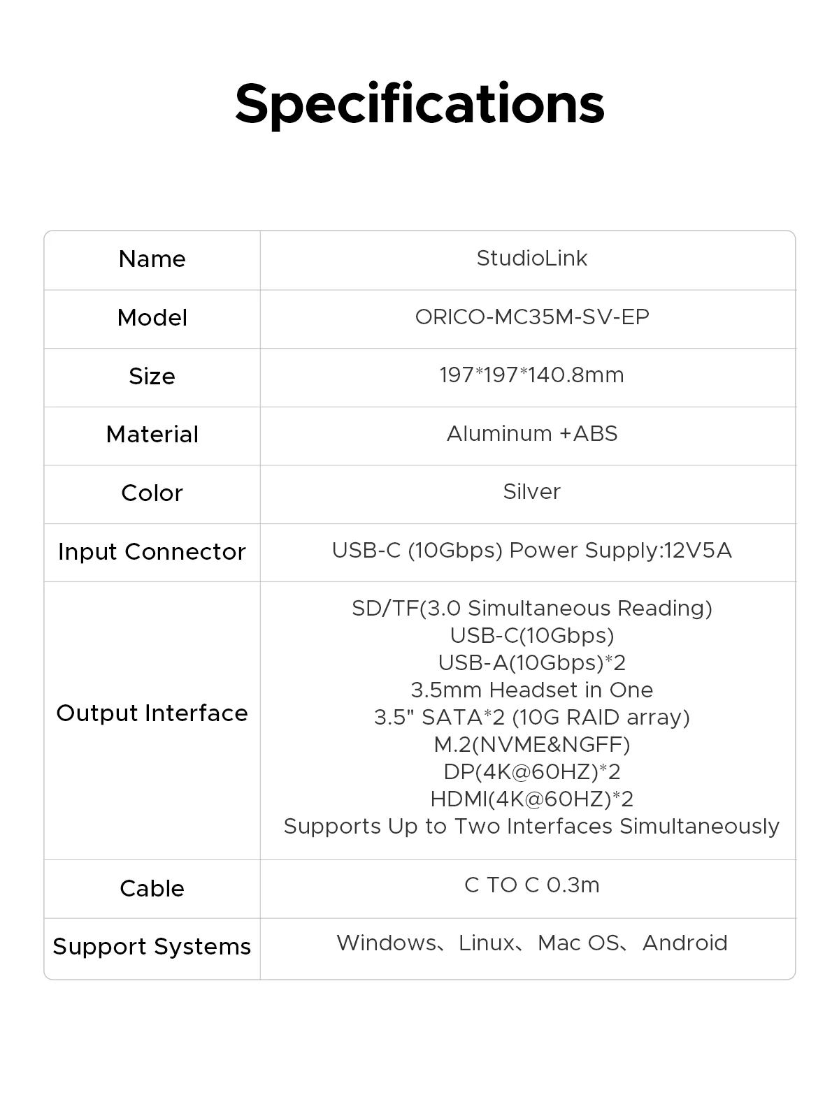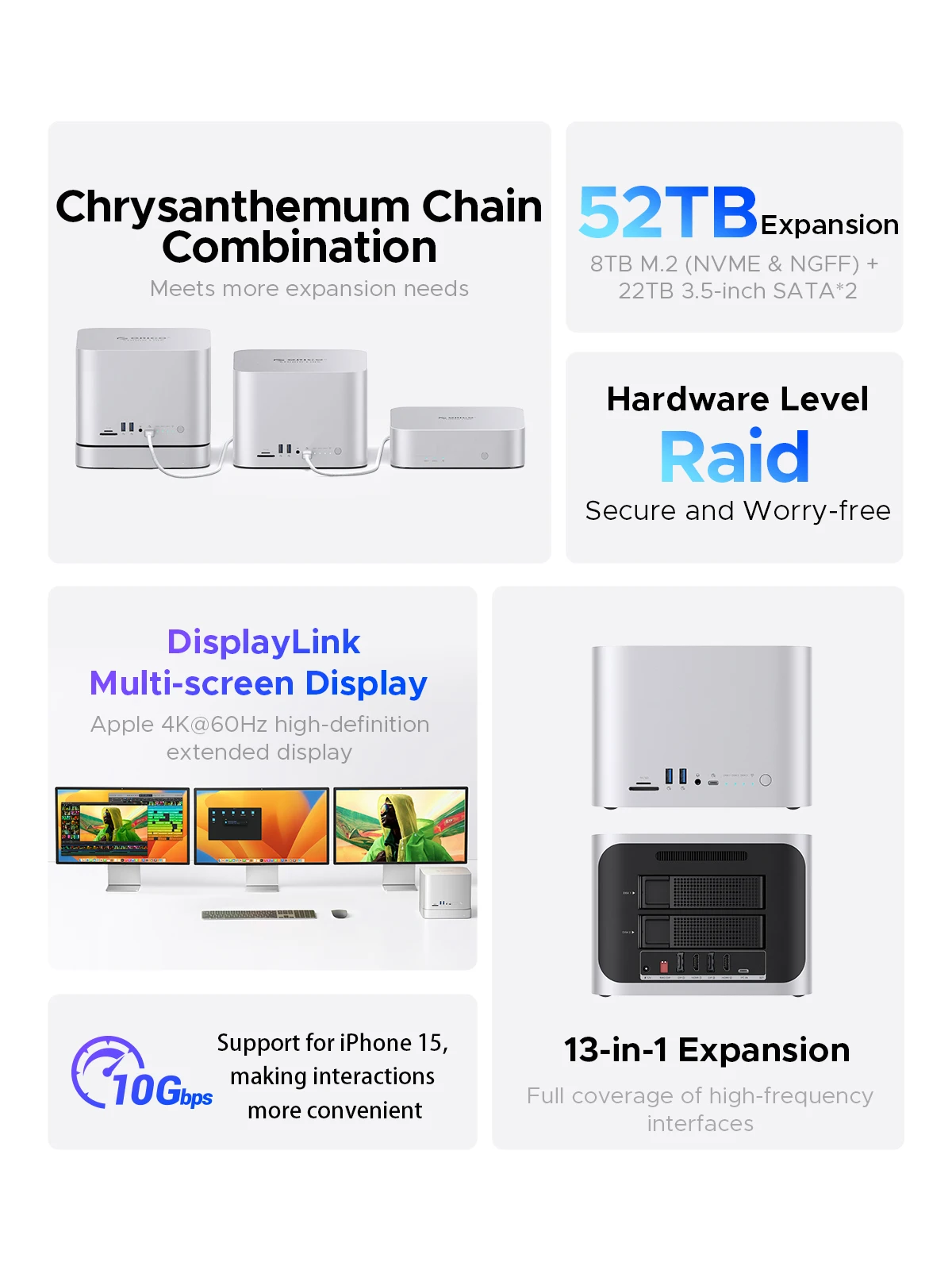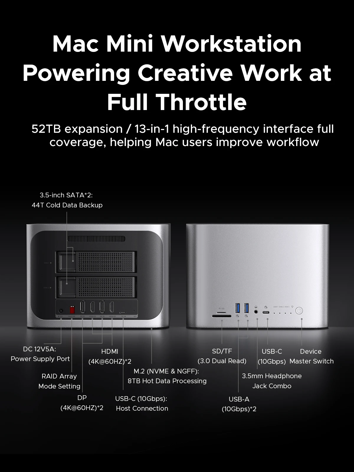 ORICO StudioLink USB C HUB HDD Enclosure For Mac mini 3.5SATA 44TB NVME M.2 SSD HDD Enclosure DP4K@60HZ SD/TF3.0 Docking Station