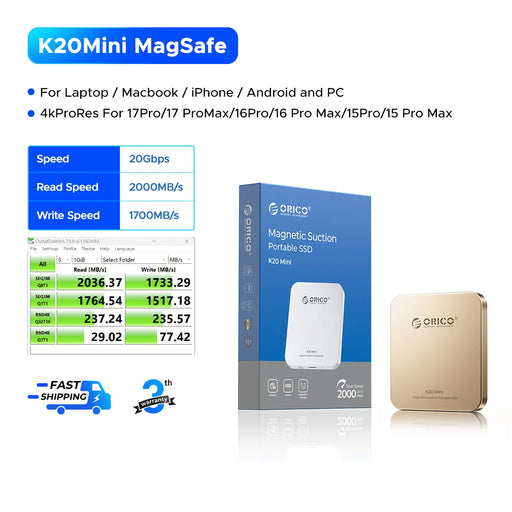 ORICO Mini Magnetic External SSD for iPhone 16 15 Pro/Max ProRes 2000MB/s 4K ProRes HDR Record and Store Portable Solid State