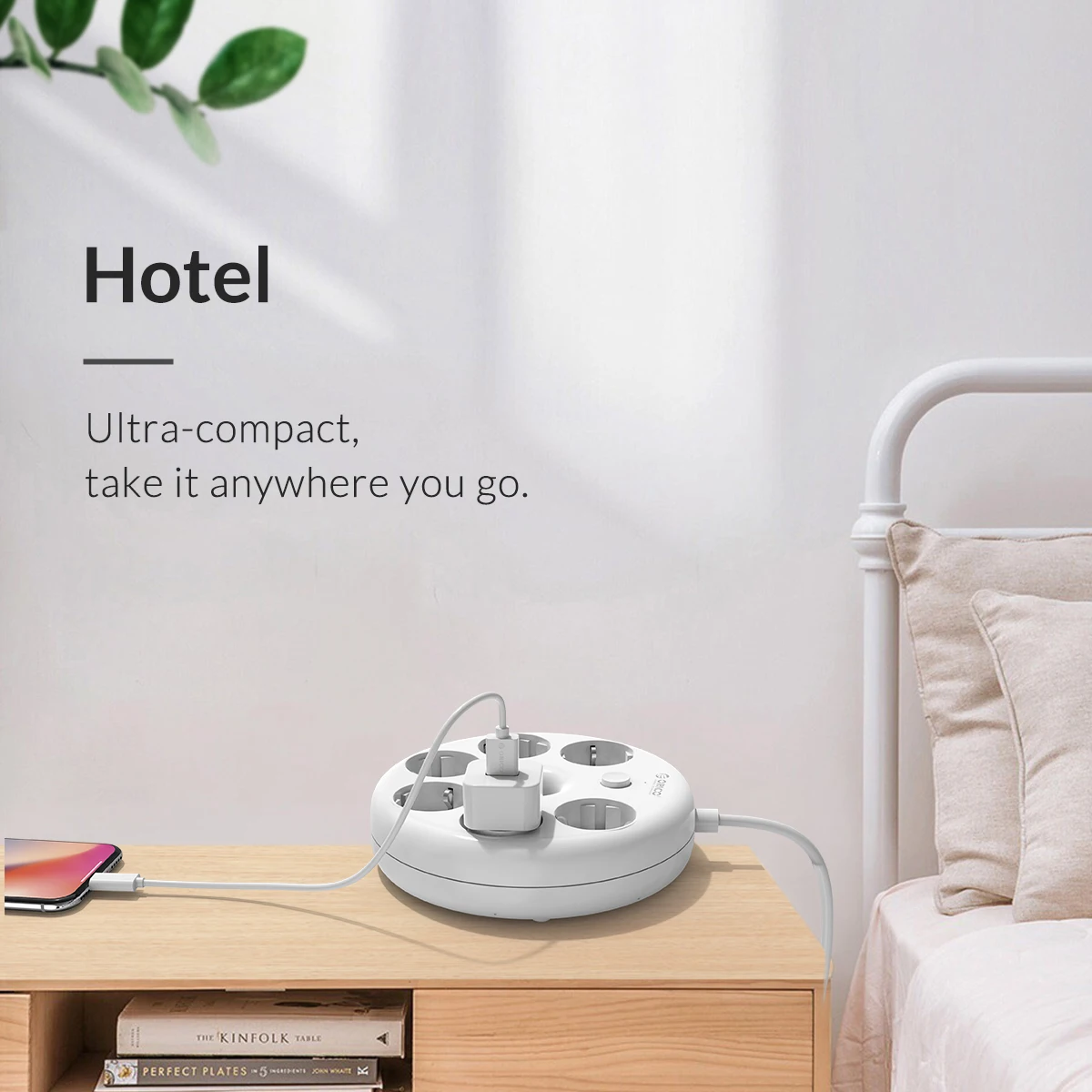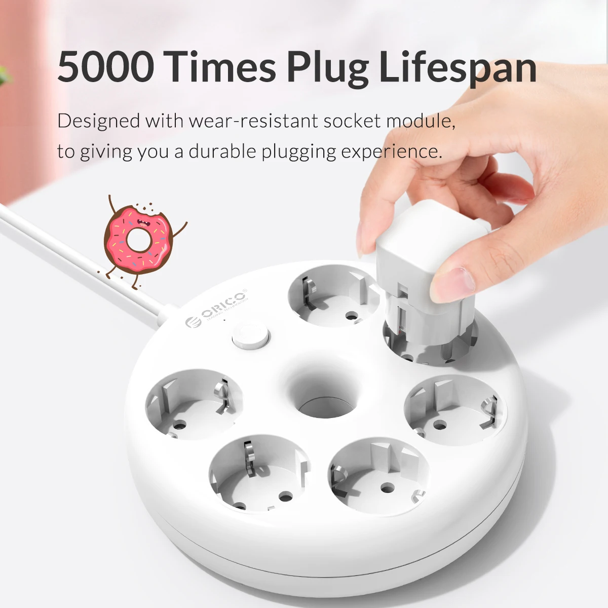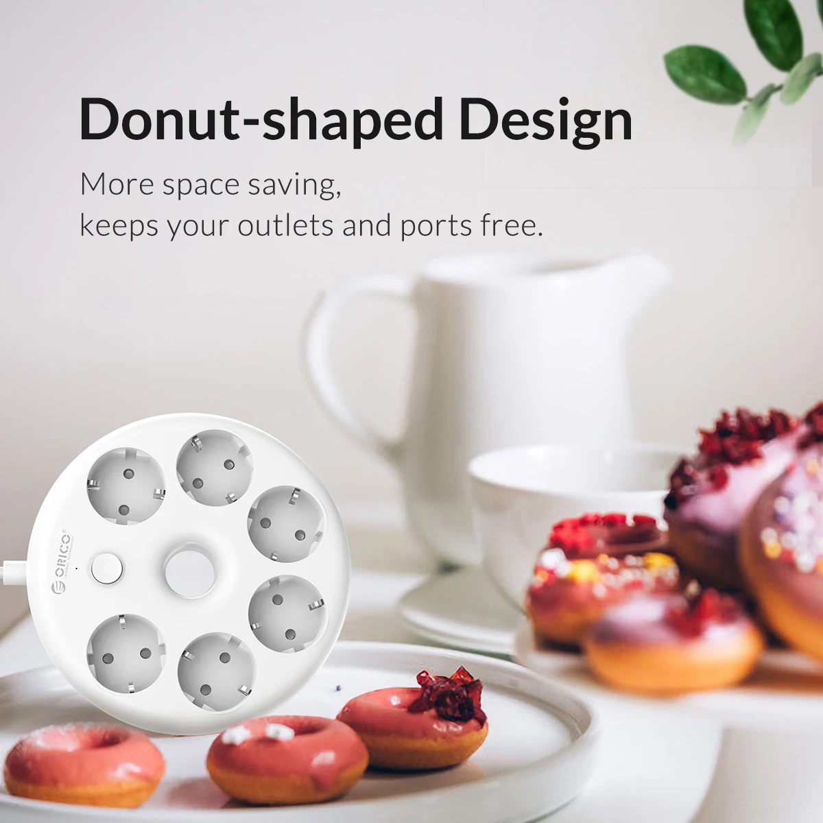 Feature 1: The donut design can prevent the plug cords from intertwining and plug crowding.