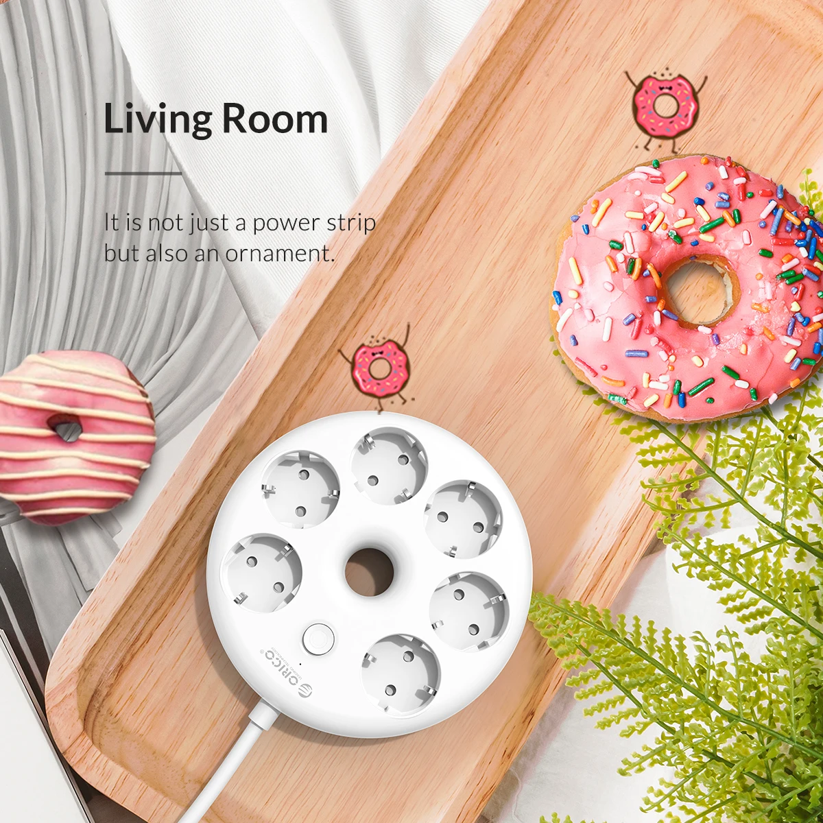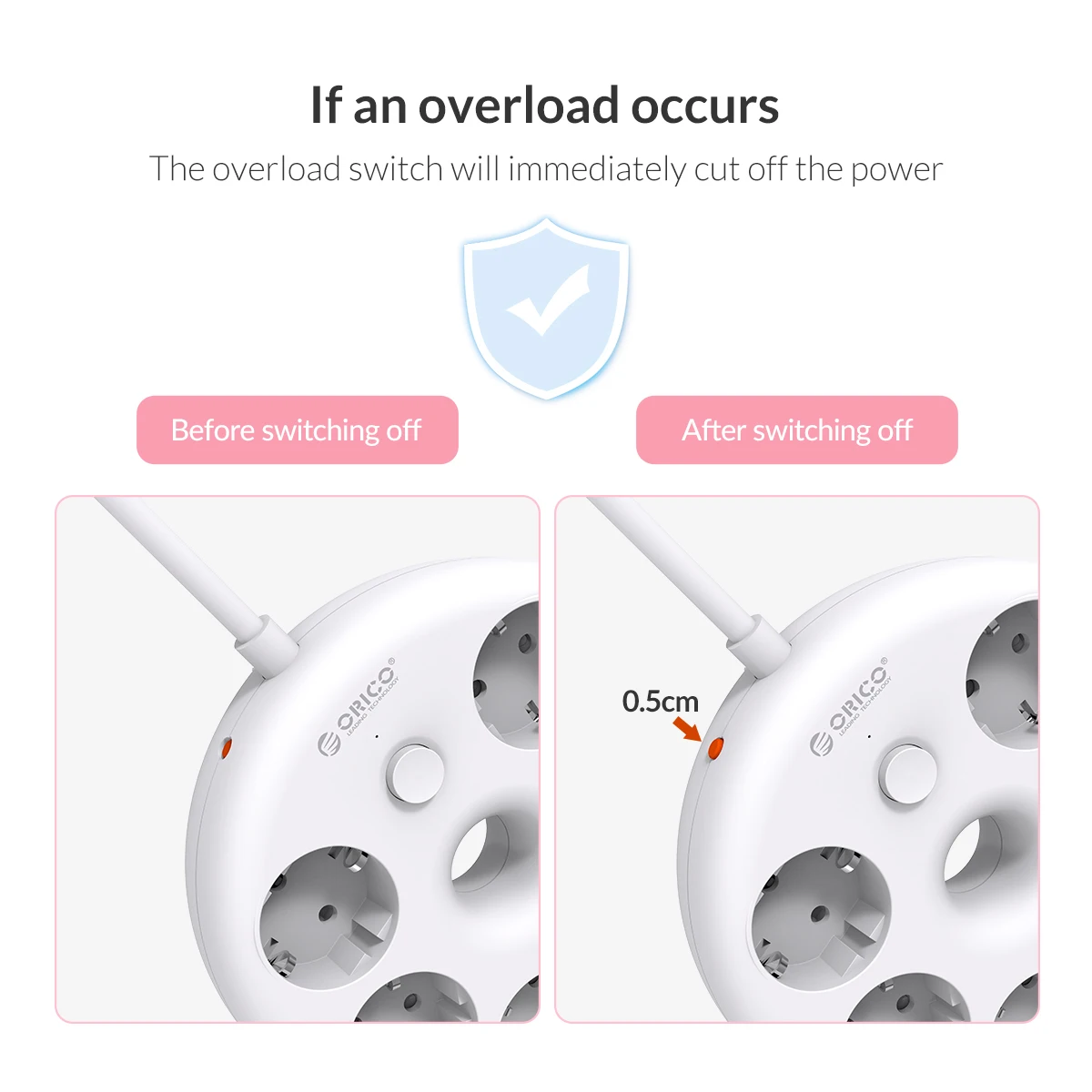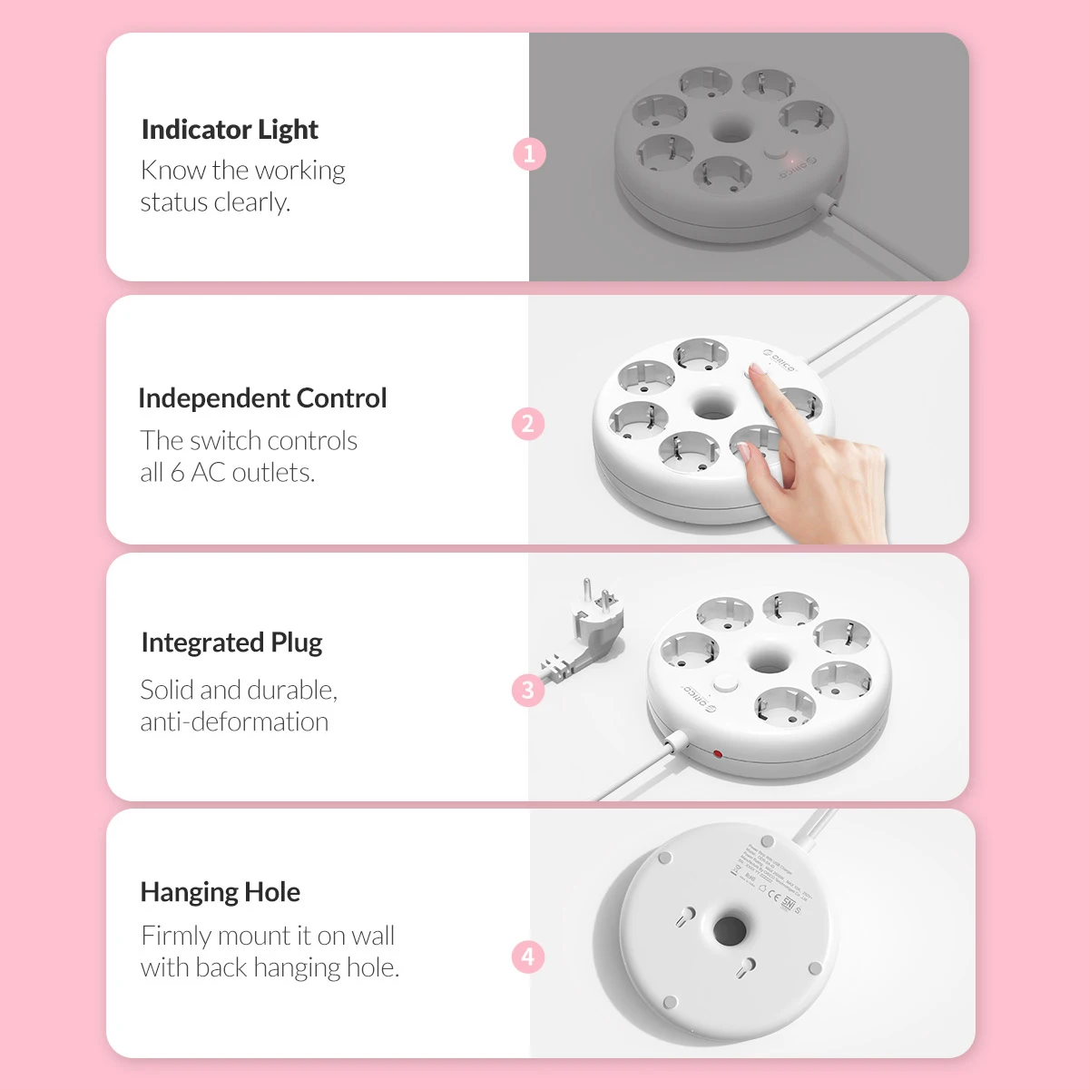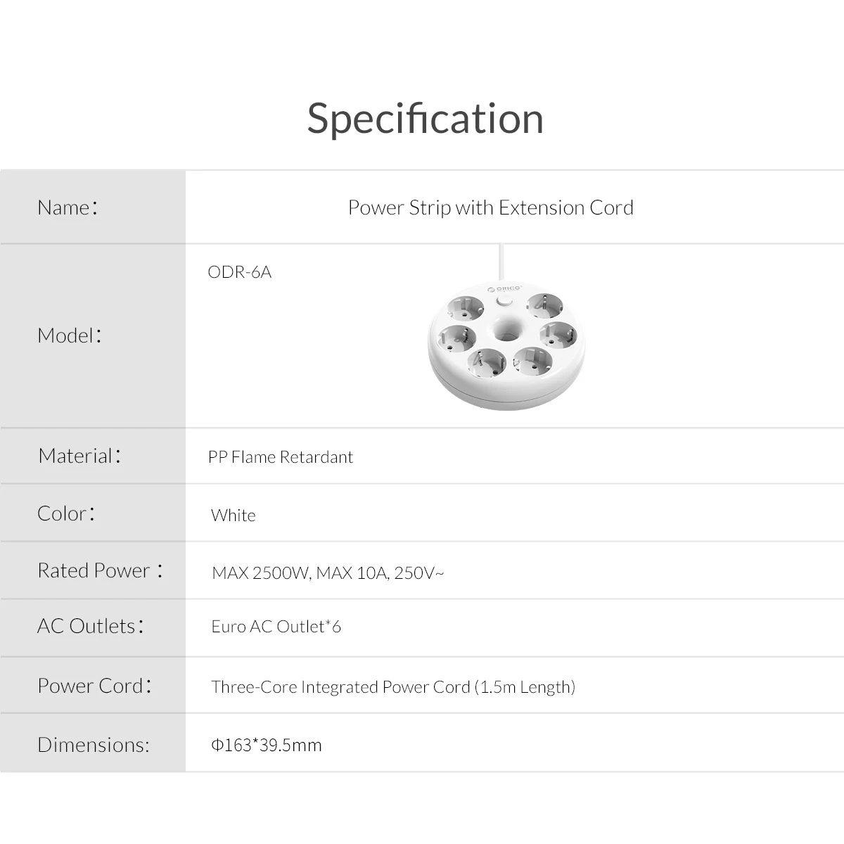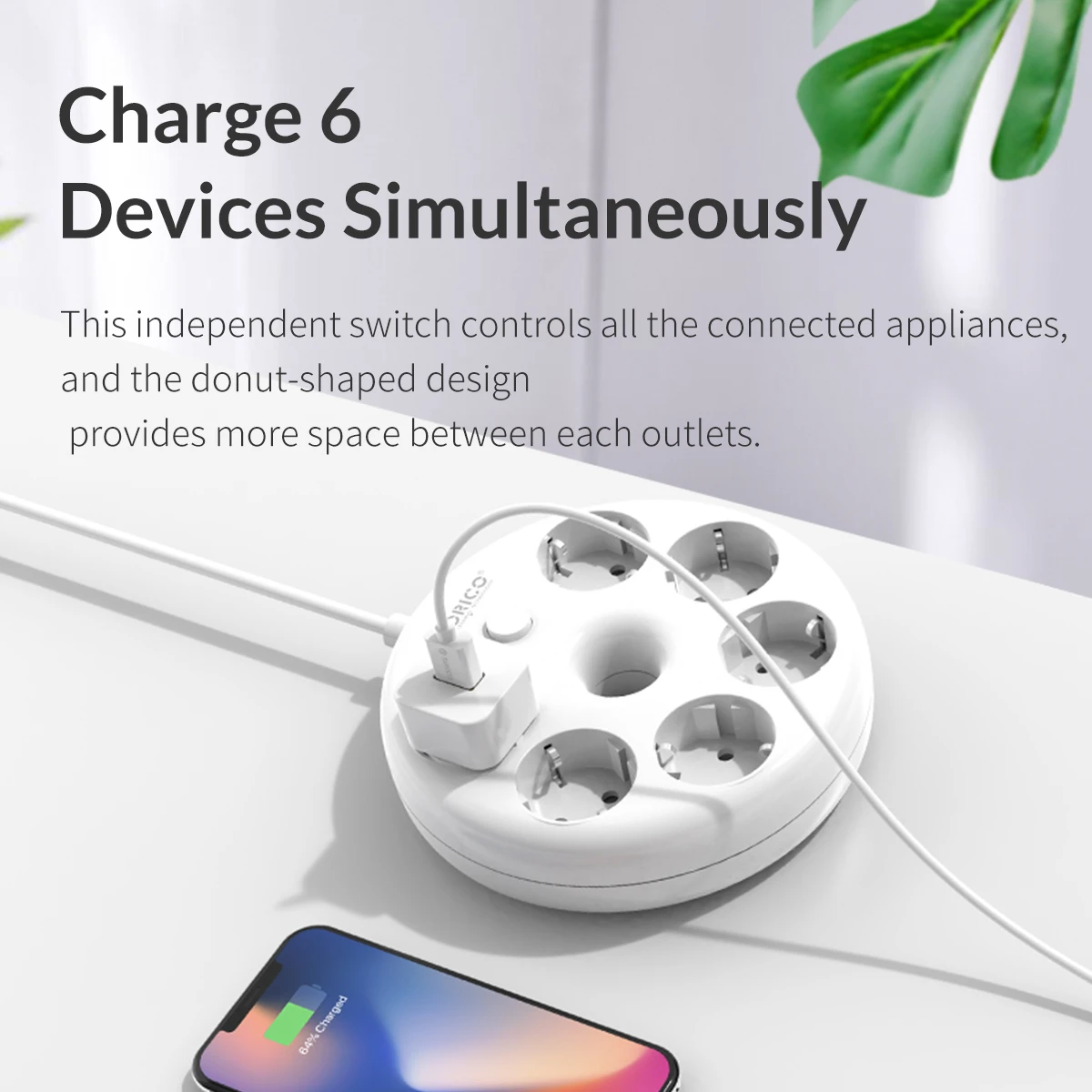 ORICO Electrical Multiple Socket with Extension Cable Power Strip EU Plug 6AC Outlets 1.5m Office and Home Overload Protection
