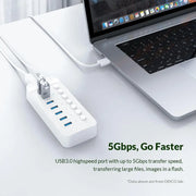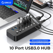 ORICO Industrial USB 3.0 HUB 7/10/13/16 ABS USB OTG Splitter On/Off Switch With 12V Power Adapter Support Charger For Computer