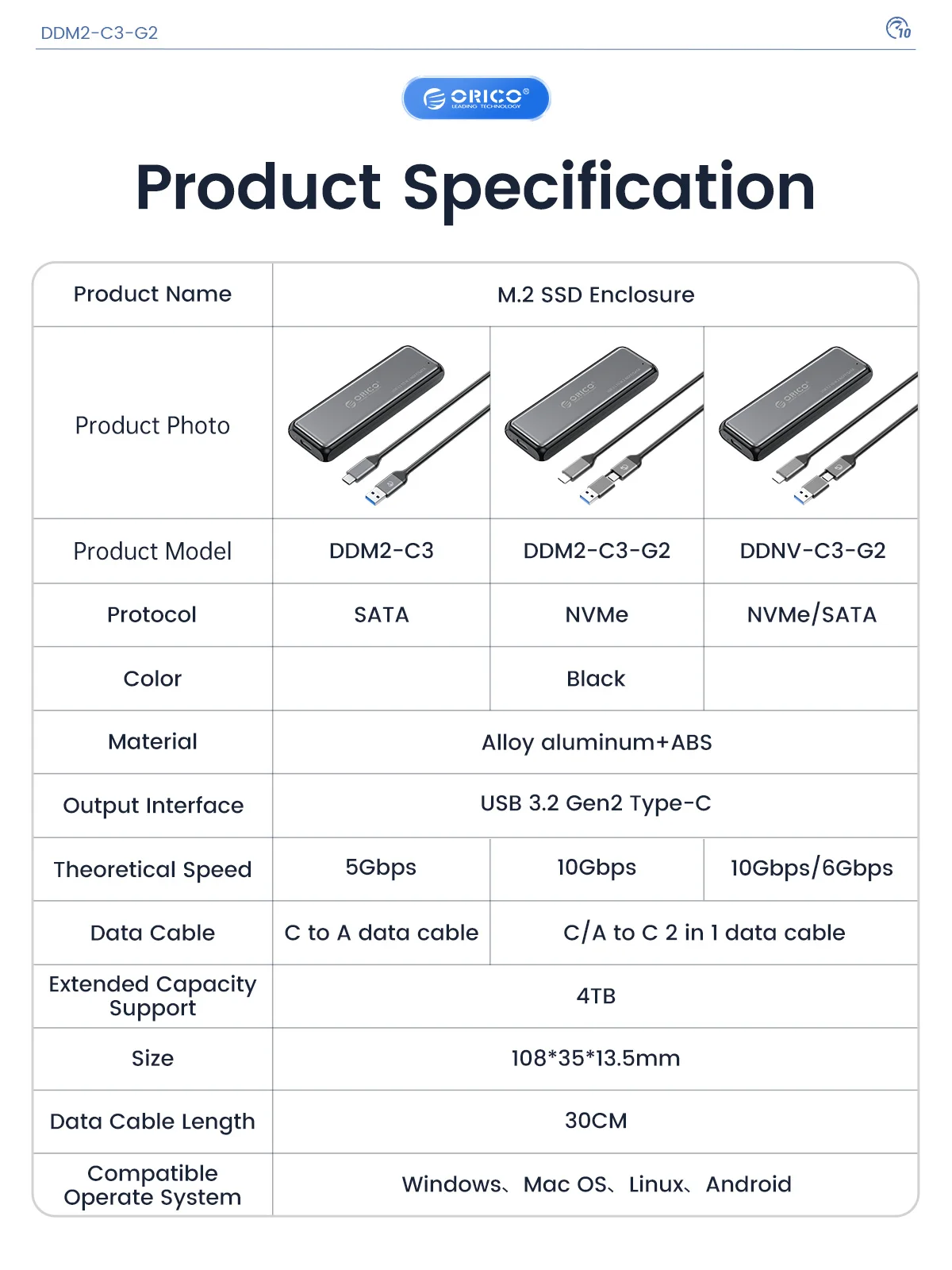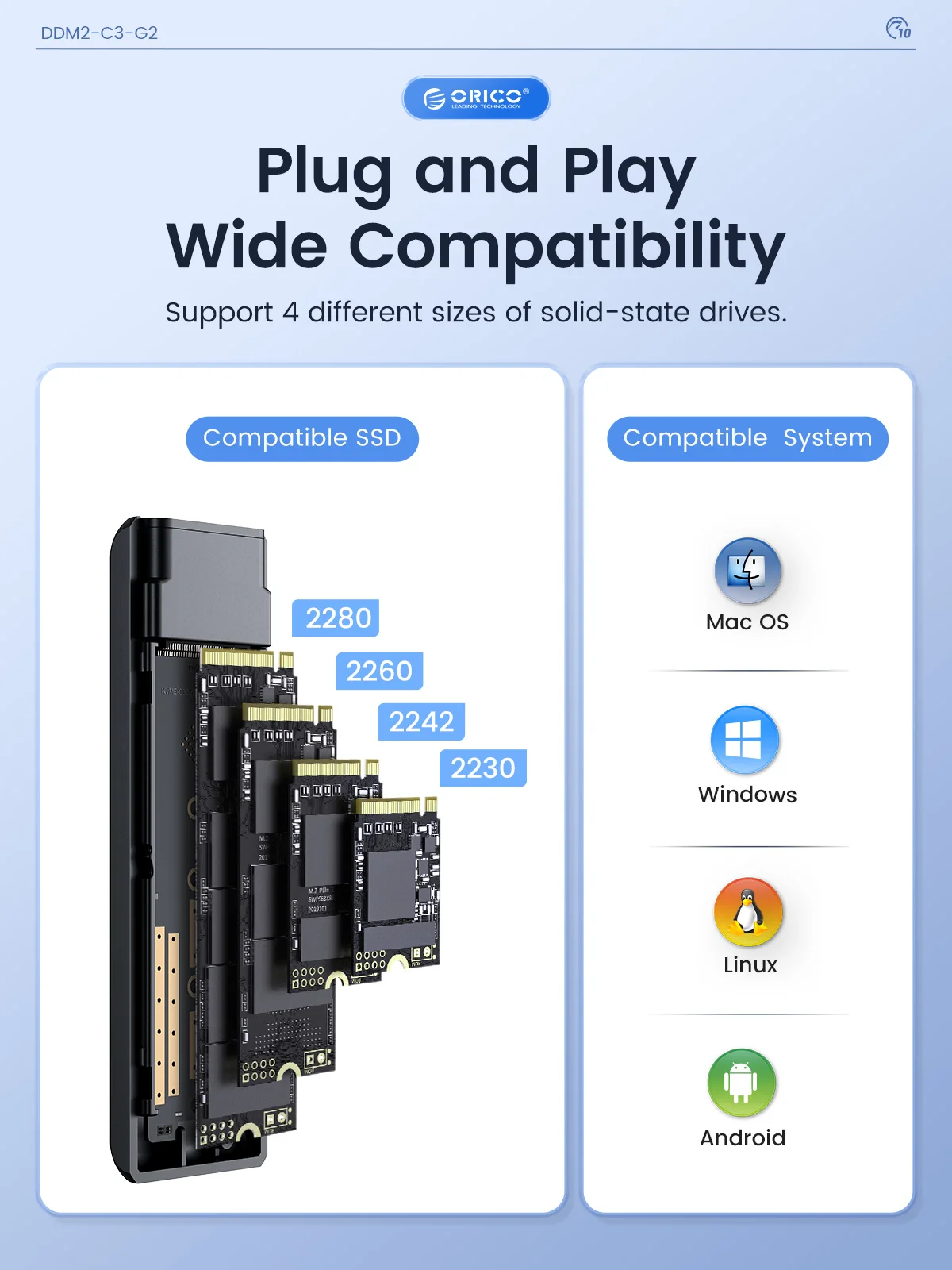 Based on feedback from all Orico customers, we have produced a smaller, more compatible SSD case with a business-style design.