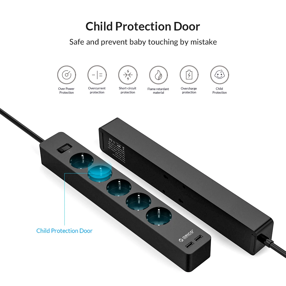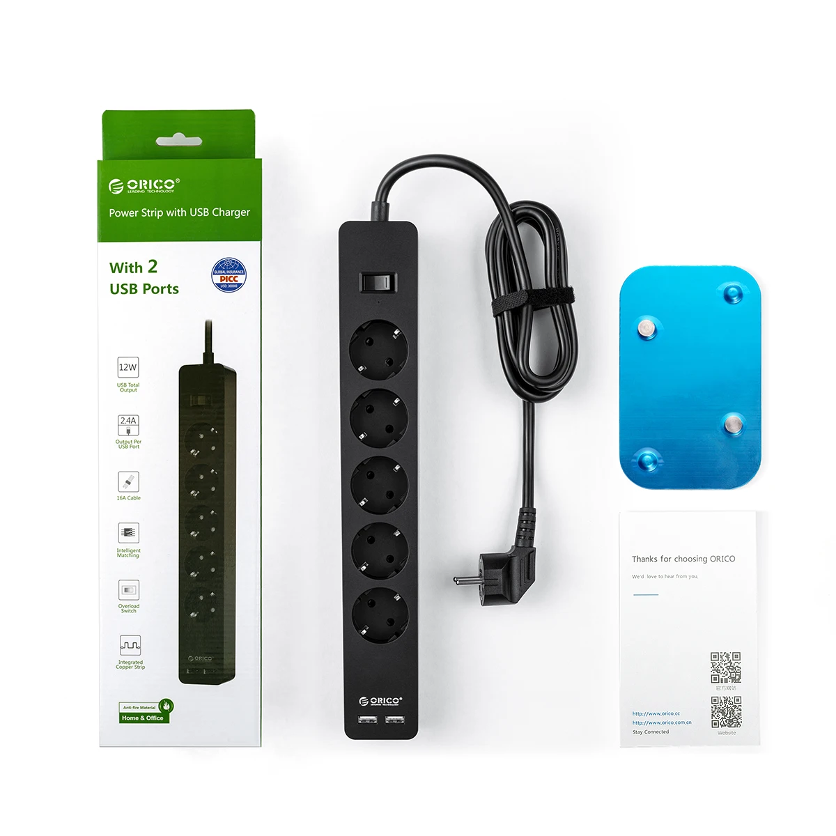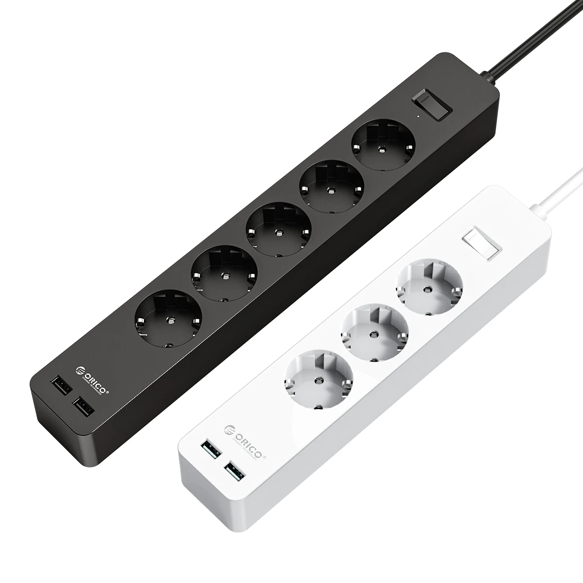 ORICO Power Strip Multiprise AC+2USB Electronic Socket Home Office Surge Protector EU Plug Extension Cable Wall Mounted Charger