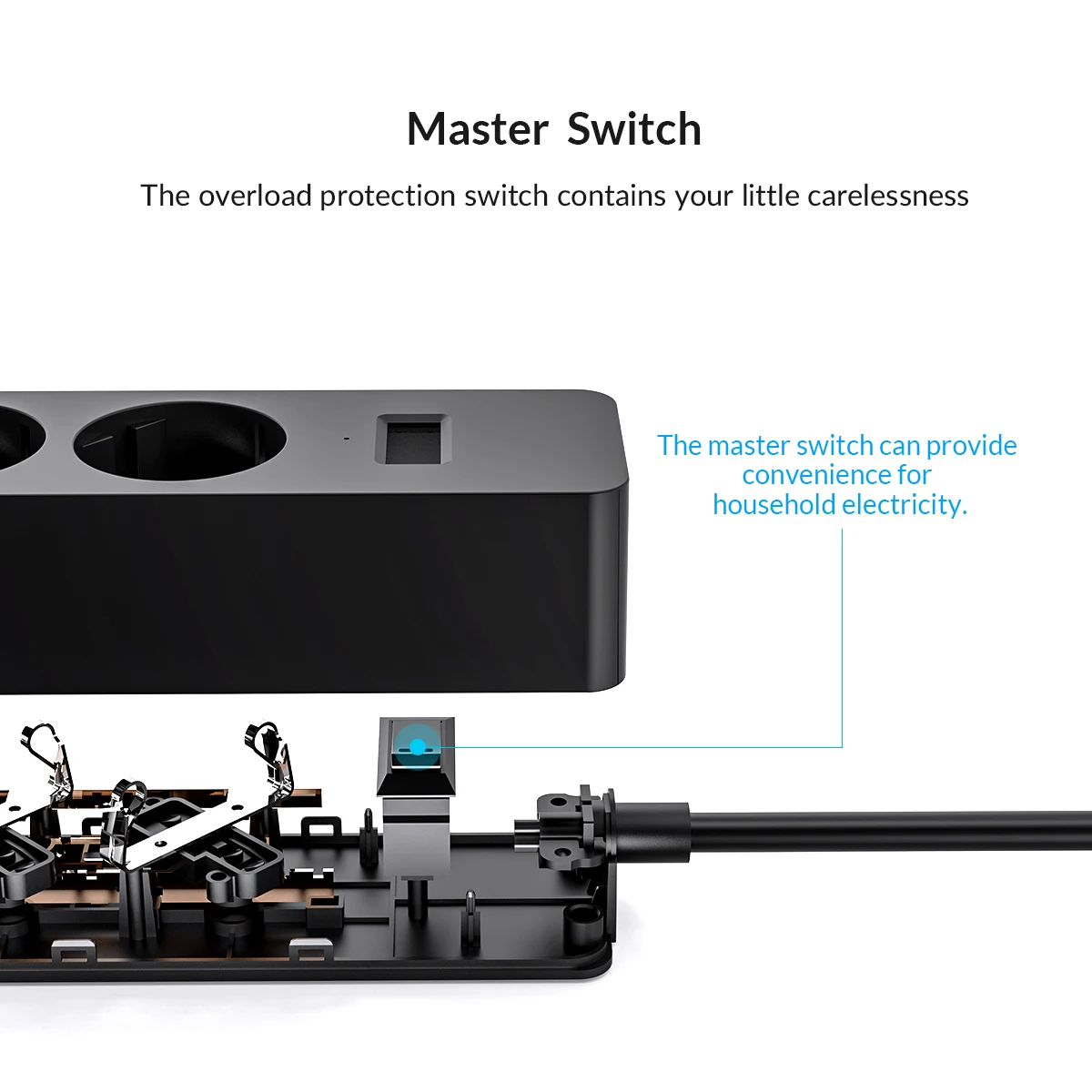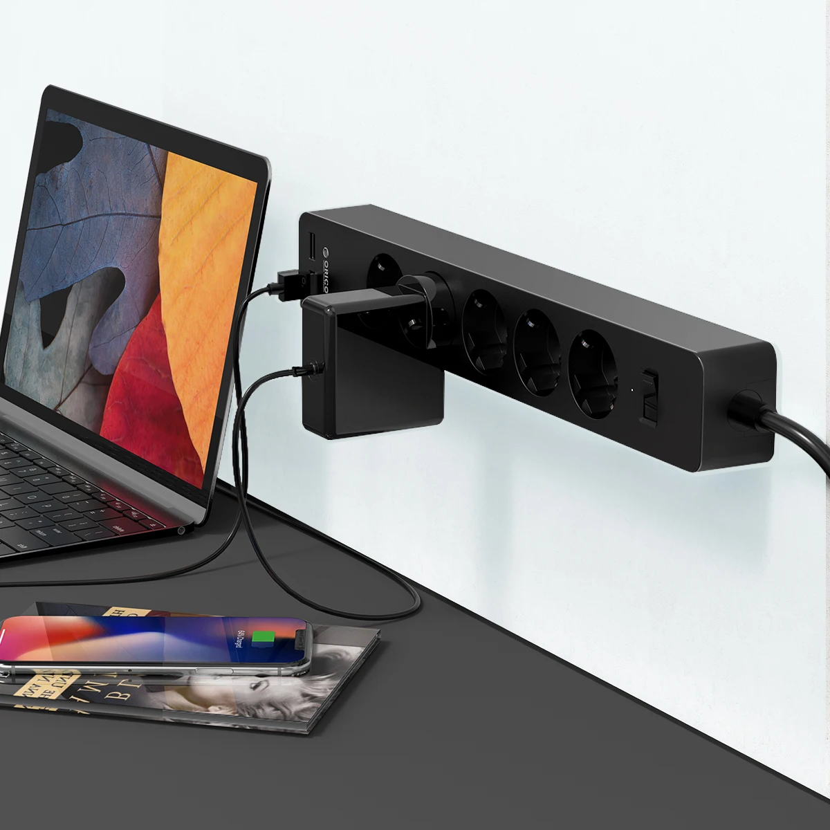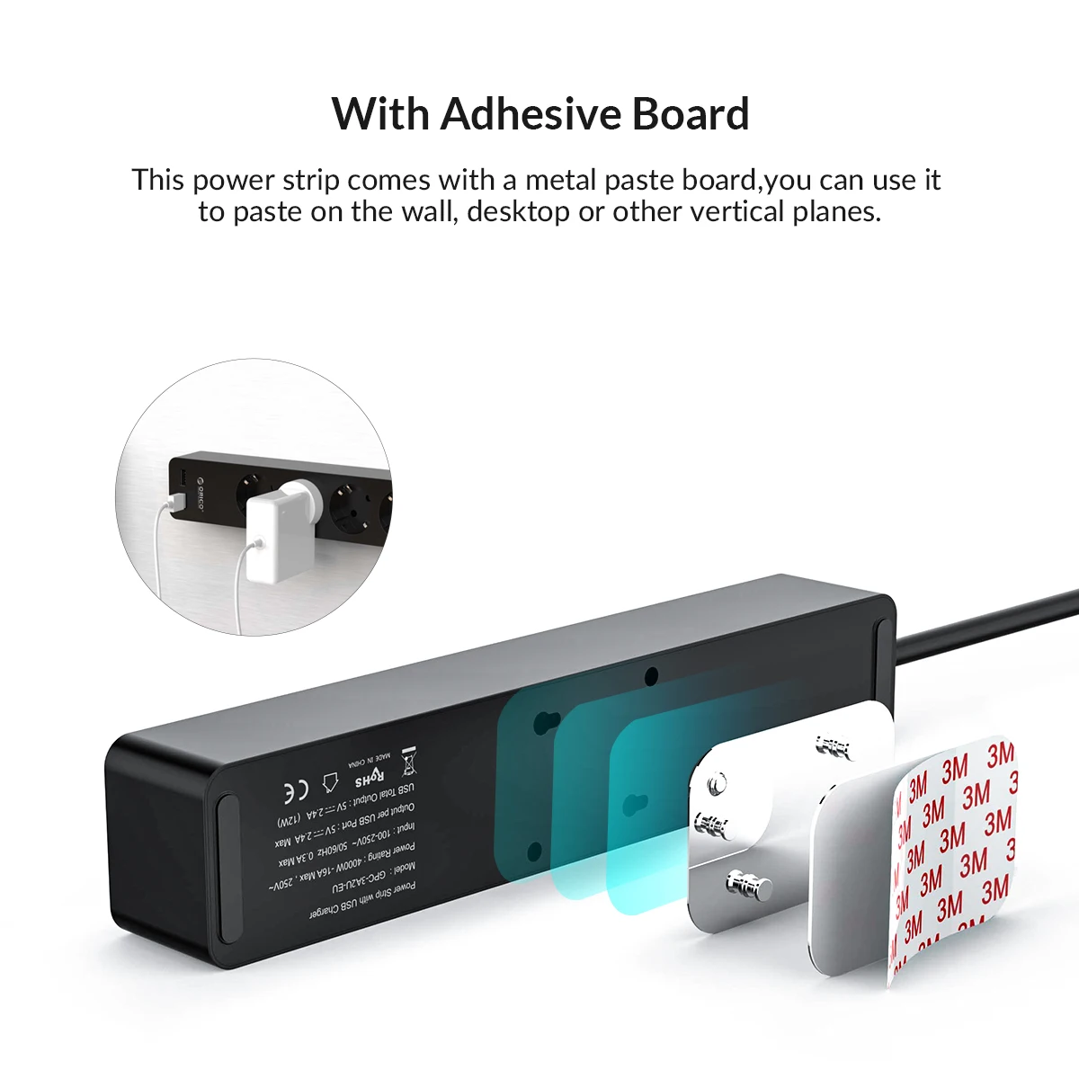 ORICO Power Strip Multiprise AC+2USB Electronic Socket Home Office Surge Protector EU Plug Extension Cable Wall Mounted Charger