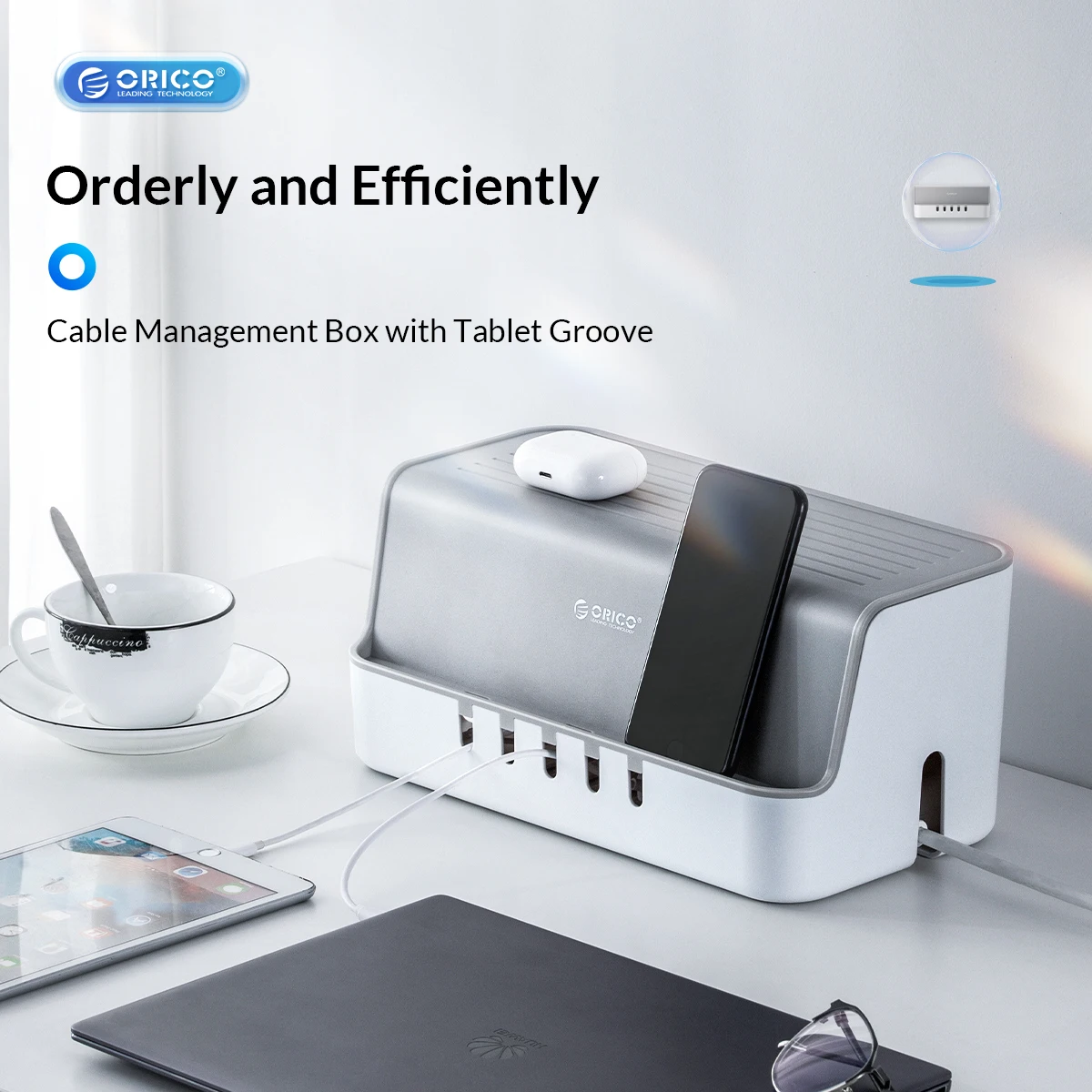 ORICO Power Strip Storage Box Cable Management Winder for Sockets Mobile Phone Holder Charging Cables Organizer