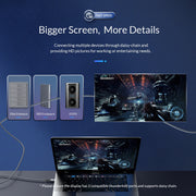 4.Support up to Single 8K @60Hz or Dual 4K x2K@60Hz video resolutions in the external display.
