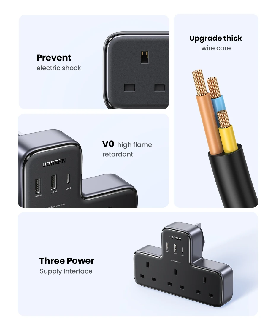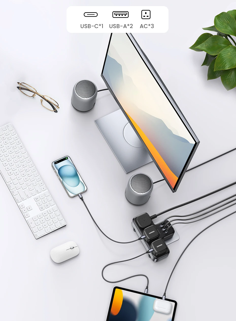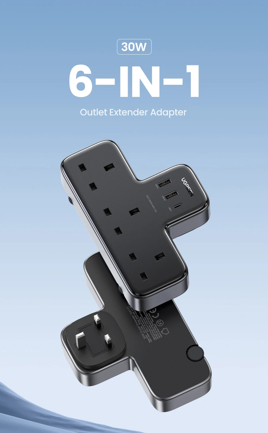 UGREEN 30W UK Plug Desktop Charger Power Strip Outlet Extension Adapter For iPhone 17 16 Pro Max Xiaomi Wall Fast Charger AD DC