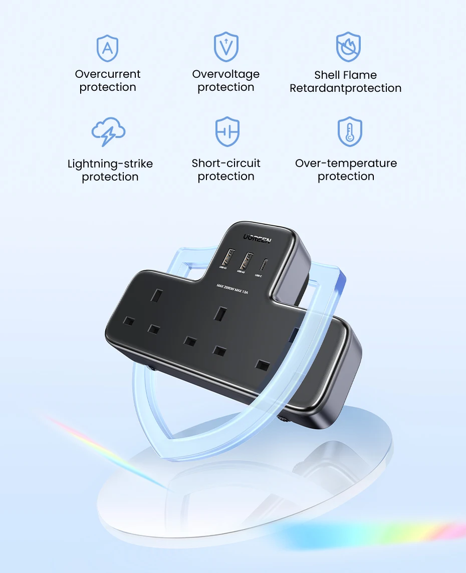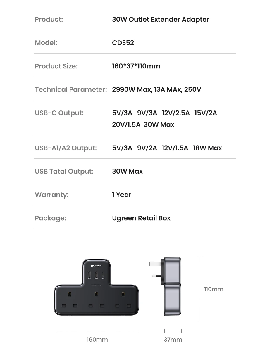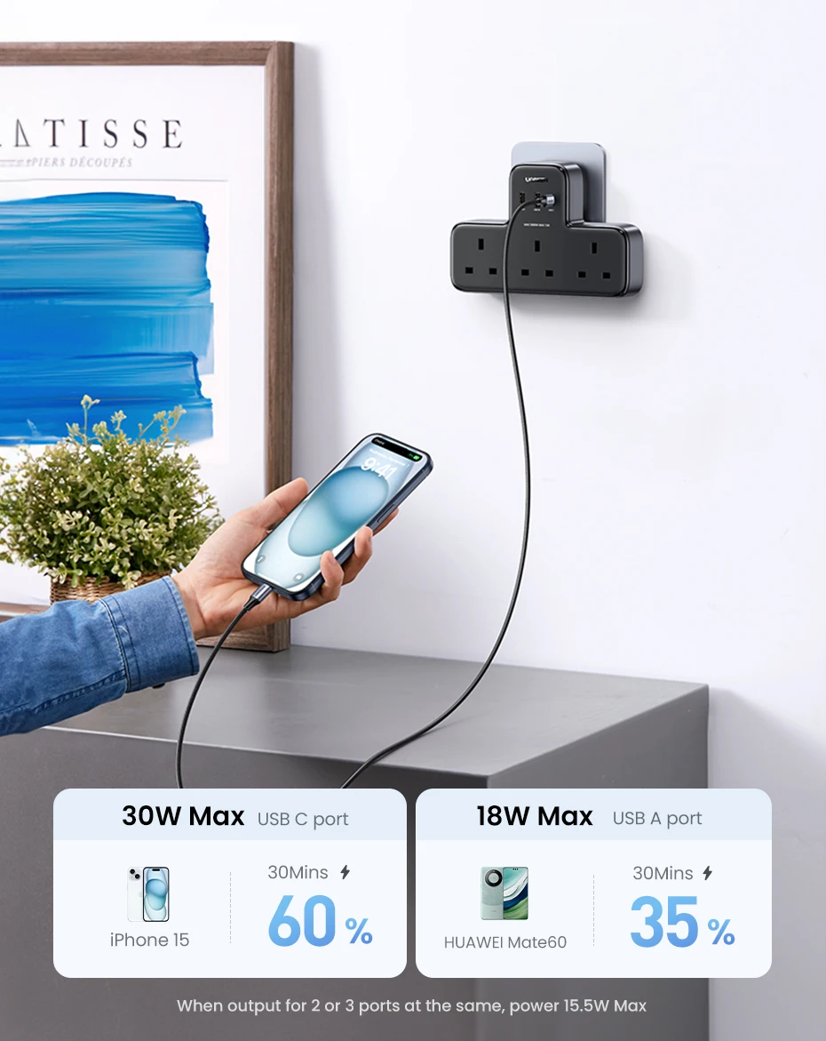 UGREEN 30W UK Plug Desktop Charger Power Strip Outlet Extension Adapter For iPhone 17 16 Pro Max Xiaomi Wall Fast Charger AD DC