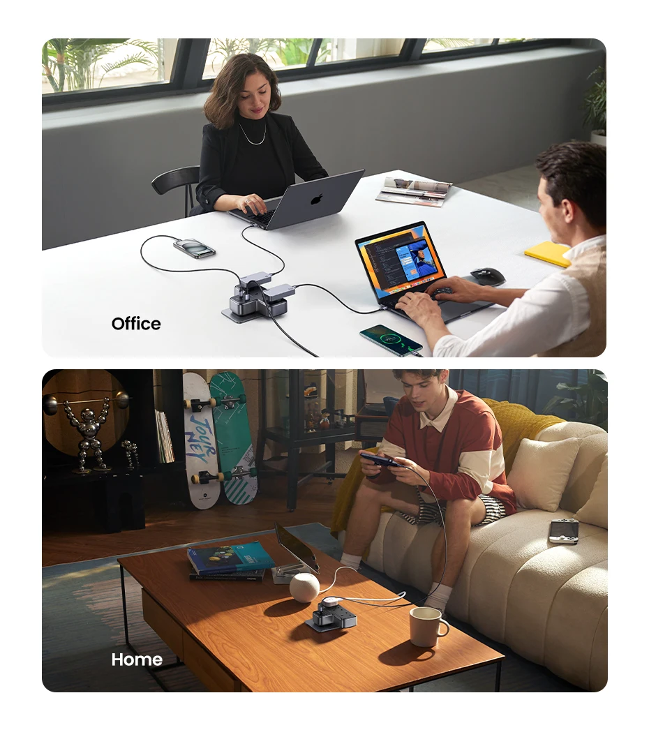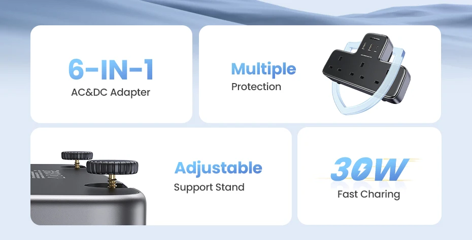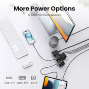 6 ports for more devices:3 AC Outlets+ 2 USB A Ports+1 USB C Ports