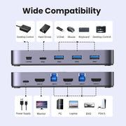 HDMI 2.0 KVM Switch: 2PCs share 3 USB-A devices + 1 USB-C devices and 1 monitor