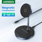 UGREEN Magnetic Wireless Charger Stand 15W Max 2-in-1 Charging Stand For iPhone 16 17 Pro Max/iPhone 14/AirPods Fast Charger