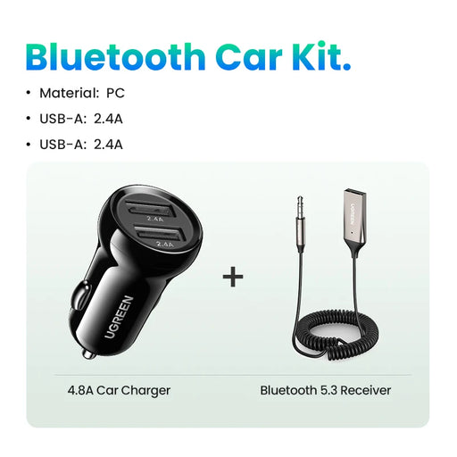 View full detailsUGREEN 2 in 1 Bluetooth Car Adapter Bluetooth 5.1 Stereo Transmitter Receiver Wireless 3.5mm Aux Jack Adapter Car Kit Mic