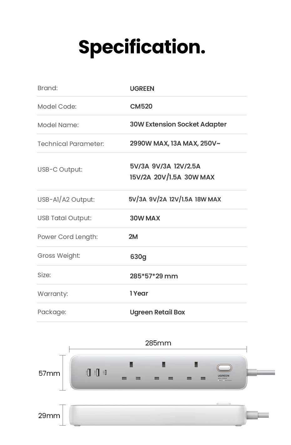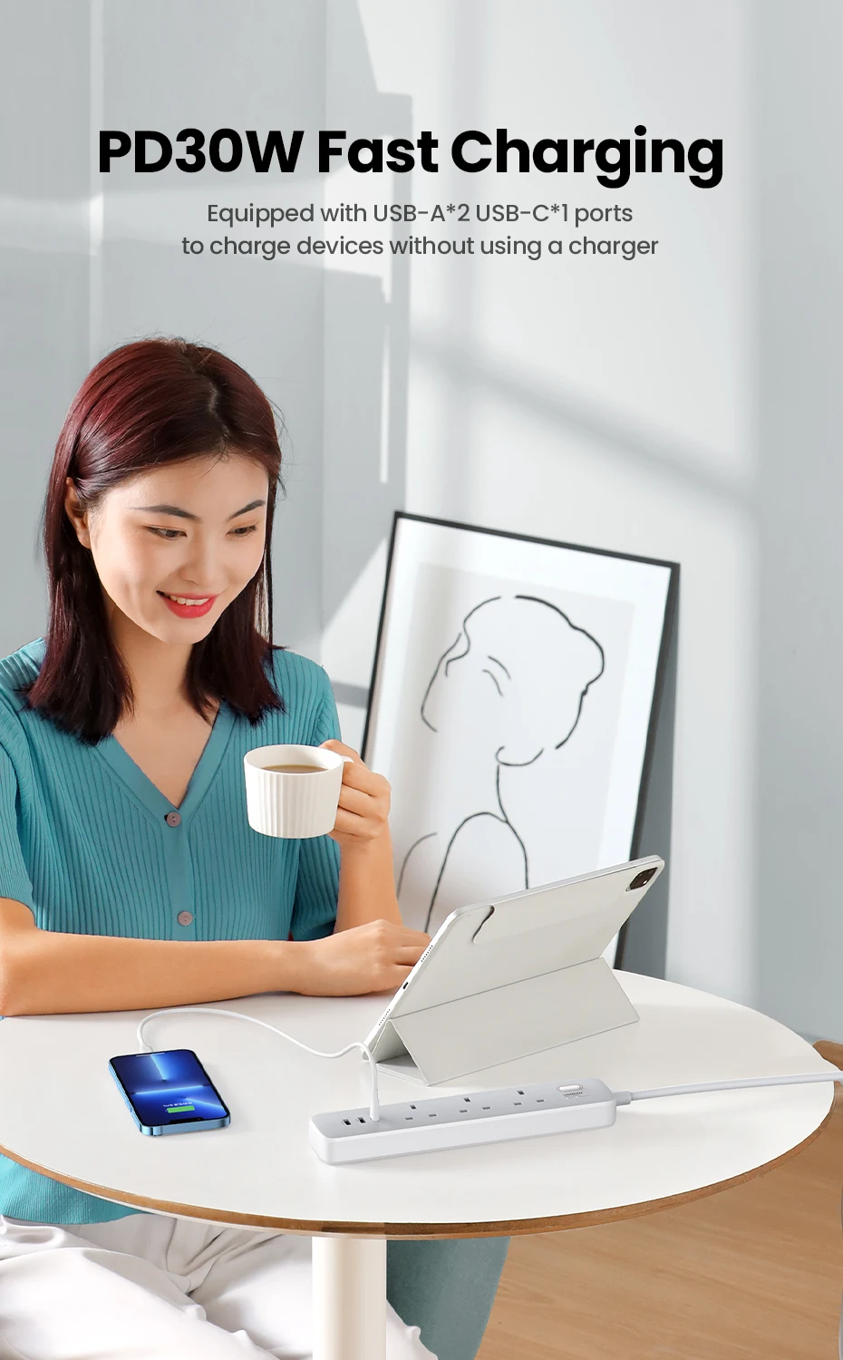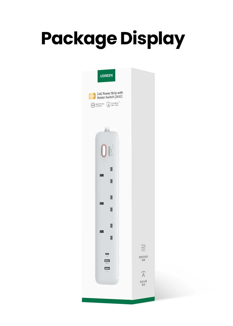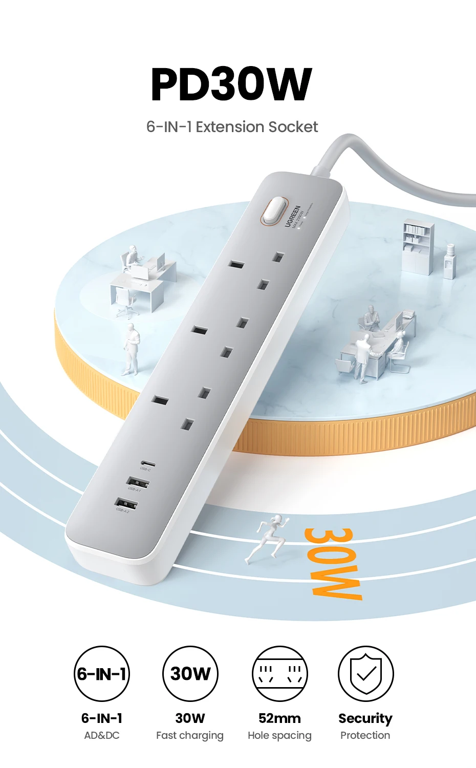 UGREEN 30W Desktop Charger Power Strip UK Plug Outlet Extension Adapter For iPhone 17 16 Pro Max Xiaomi Wall Fast Charger AD DC