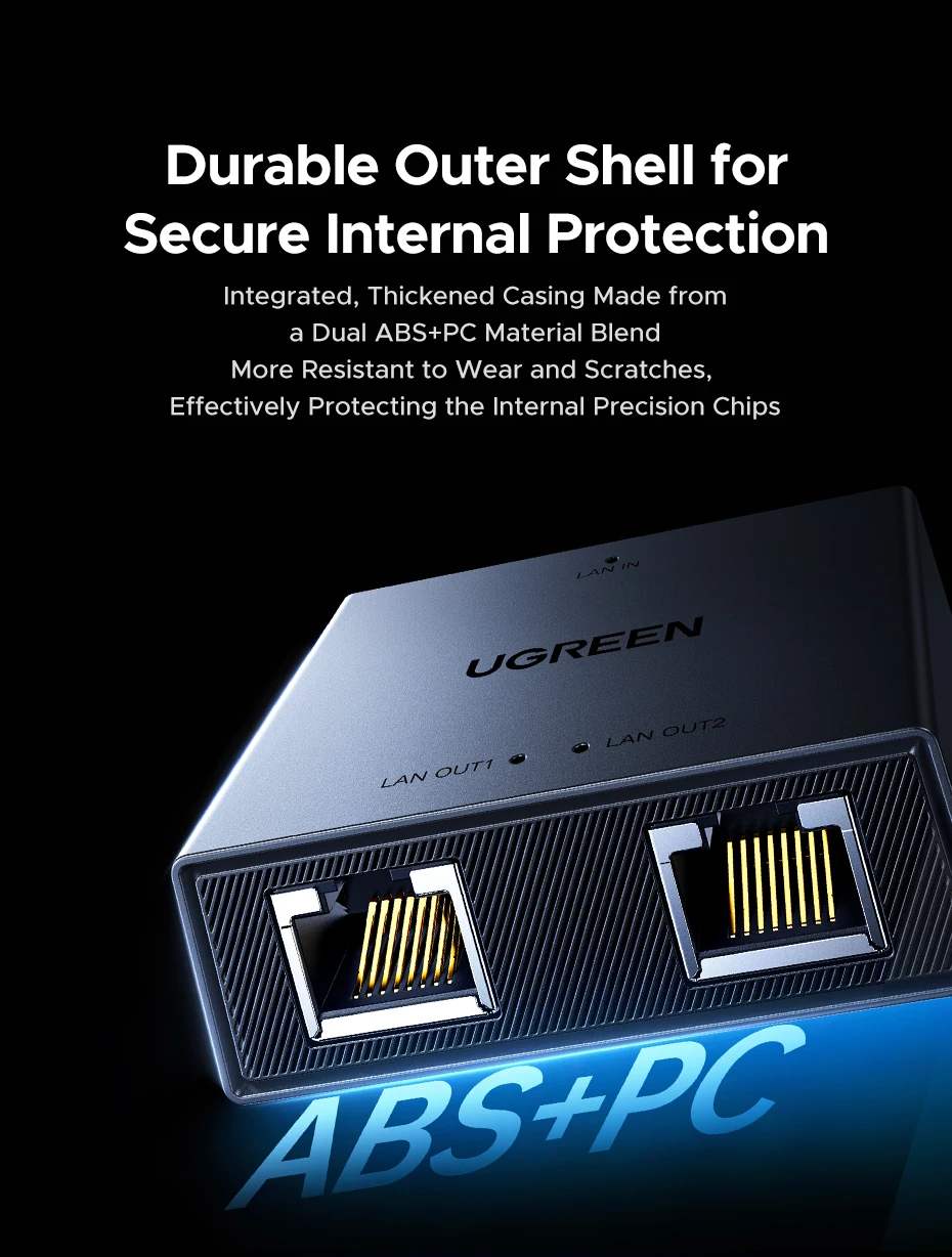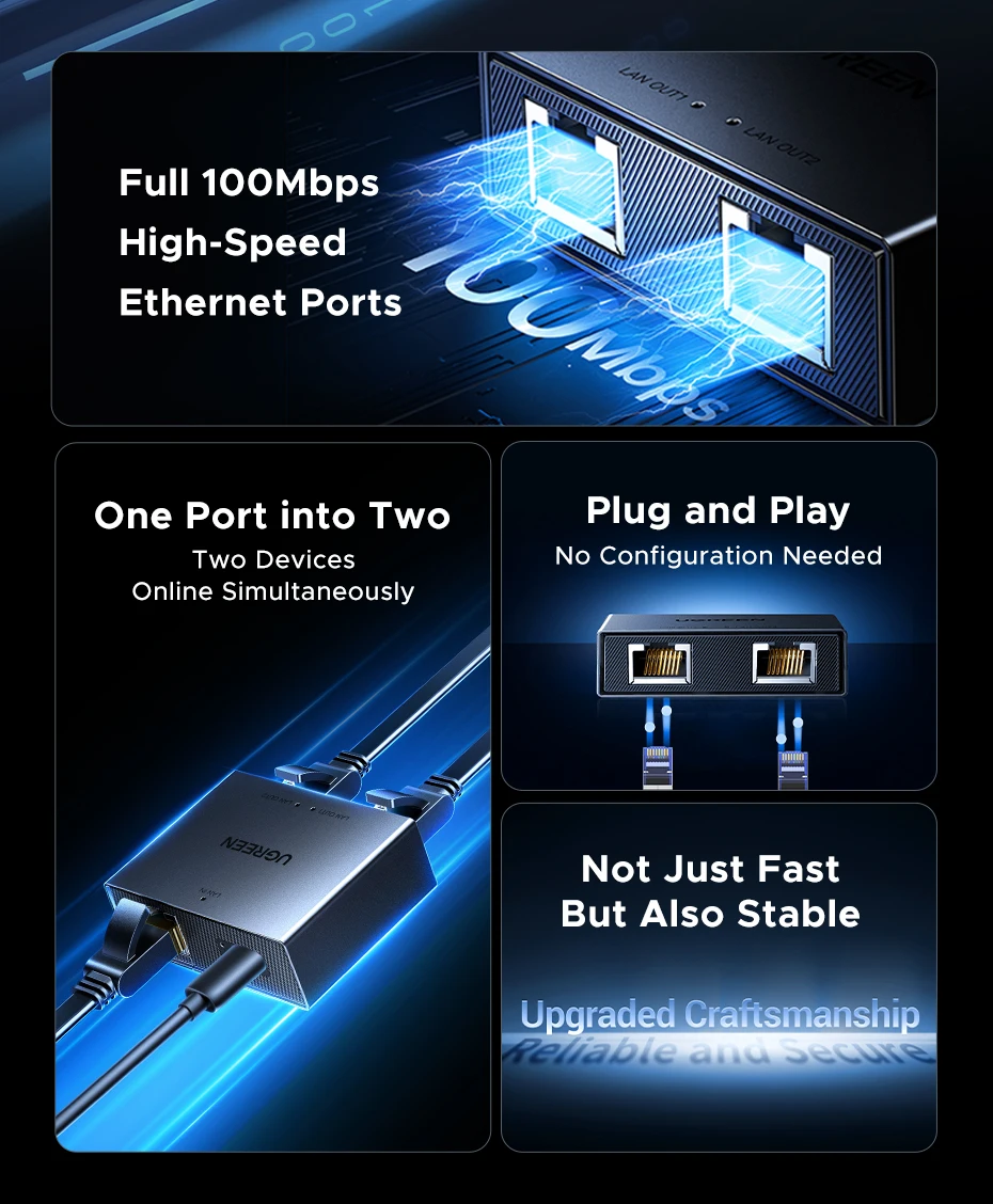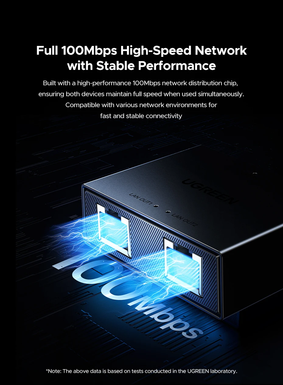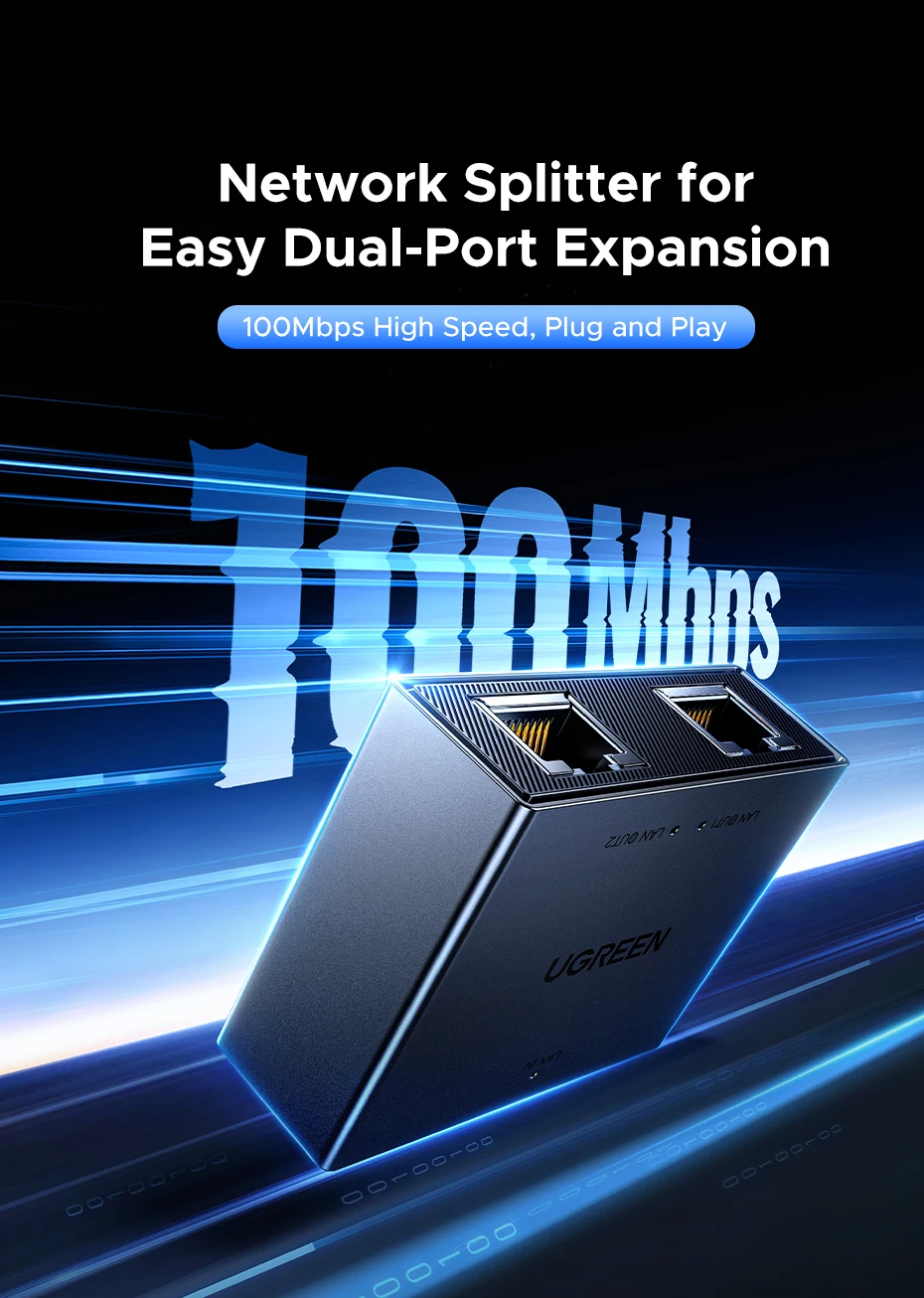 UGREEN Ethernet Splitter 100Mbps 1 to 2 RJ45 Splitter Ethernet Adapter Lan Connector Switch Coupler for PC Laptop TV Box Router
