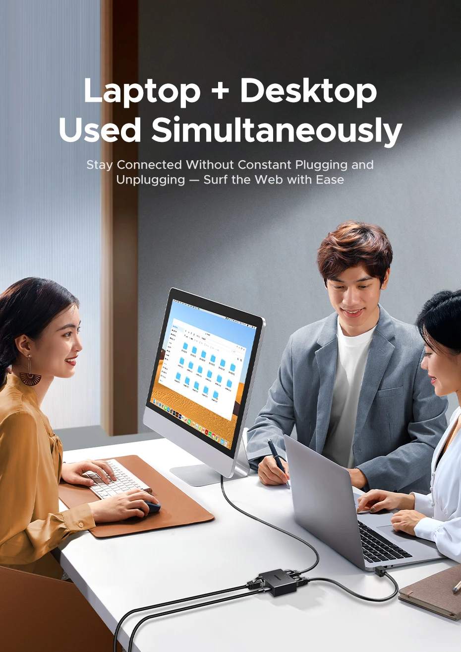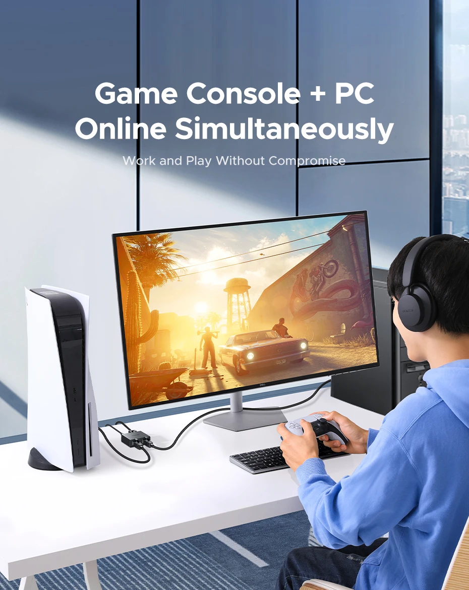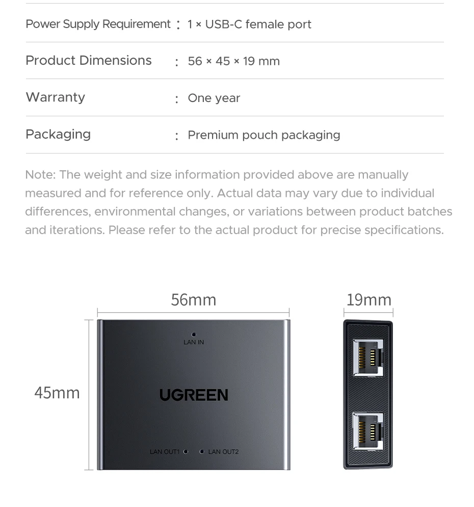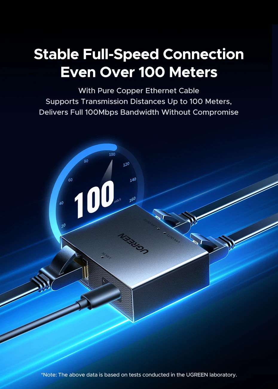 UGREEN Ethernet Splitter 100Mbps 1 to 2 RJ45 Splitter Ethernet Adapter Lan Connector Switch Coupler for PC Laptop TV Box Router