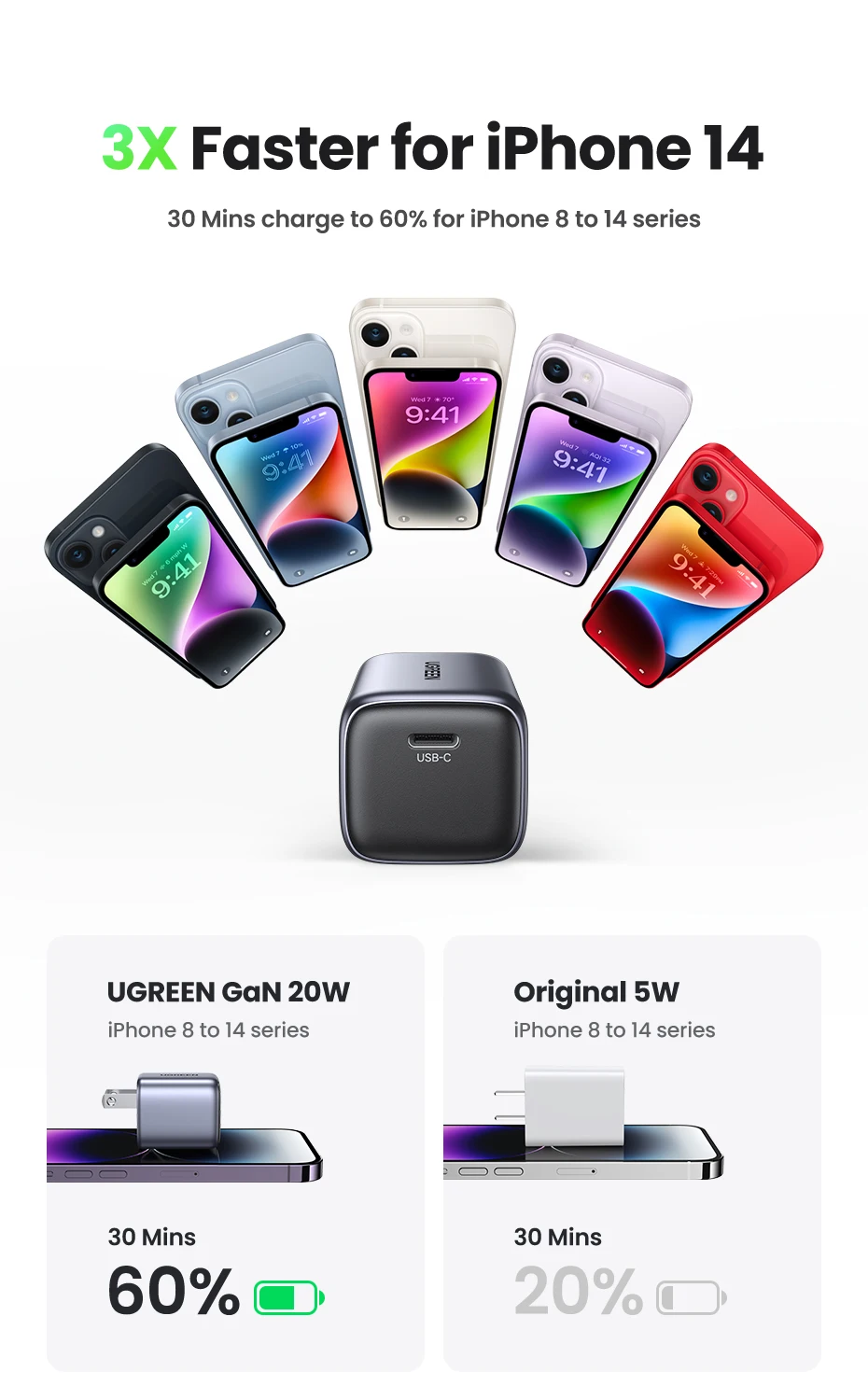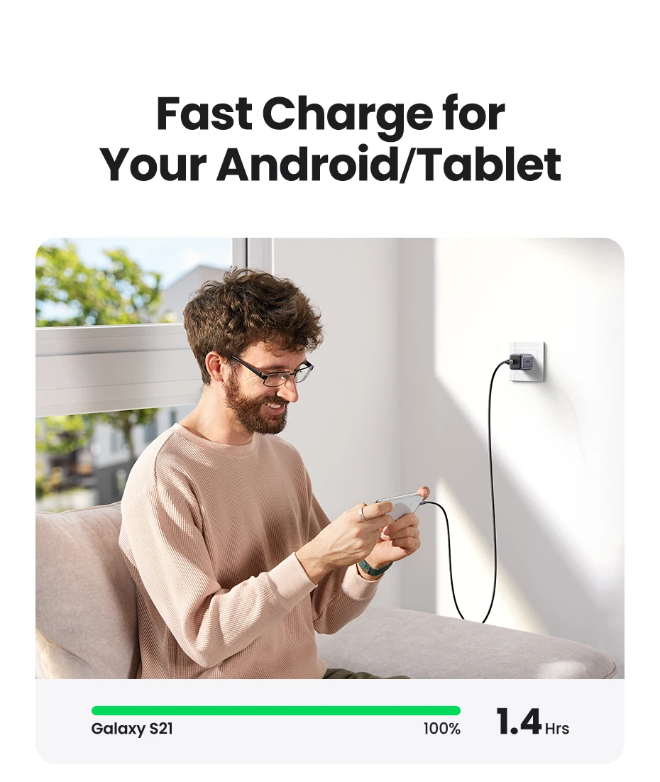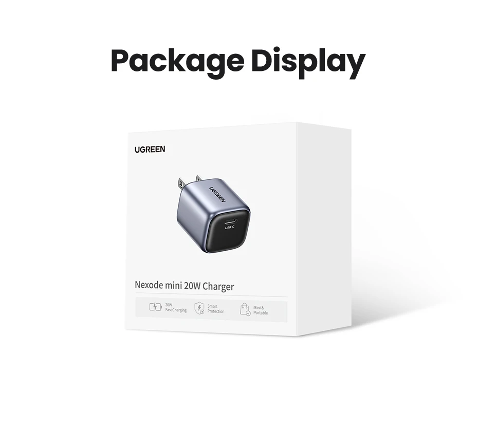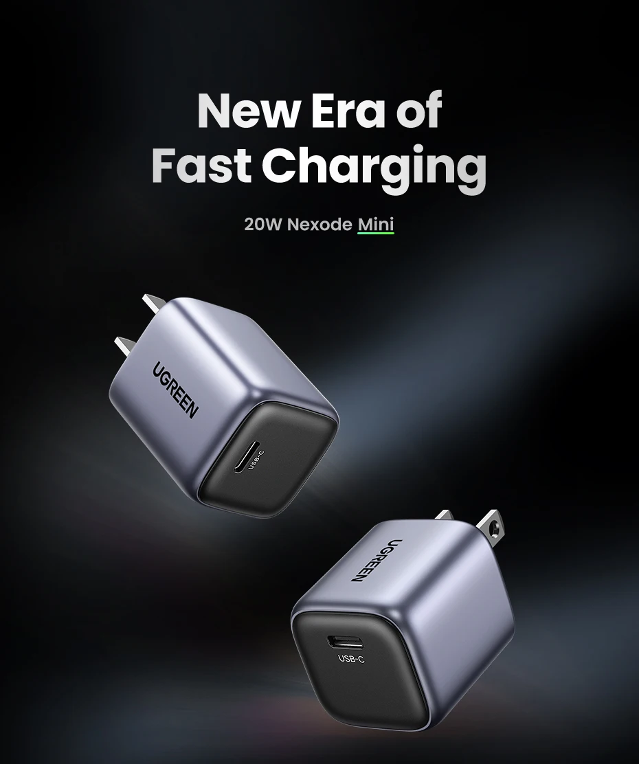 【US Plug】UGREEN 20W GaN Charger PD Fast Charger USB C PD3.0 QC3.0 Quick Charging For iPhone 15 14 Pro Samsung Xiaomi USB Charger