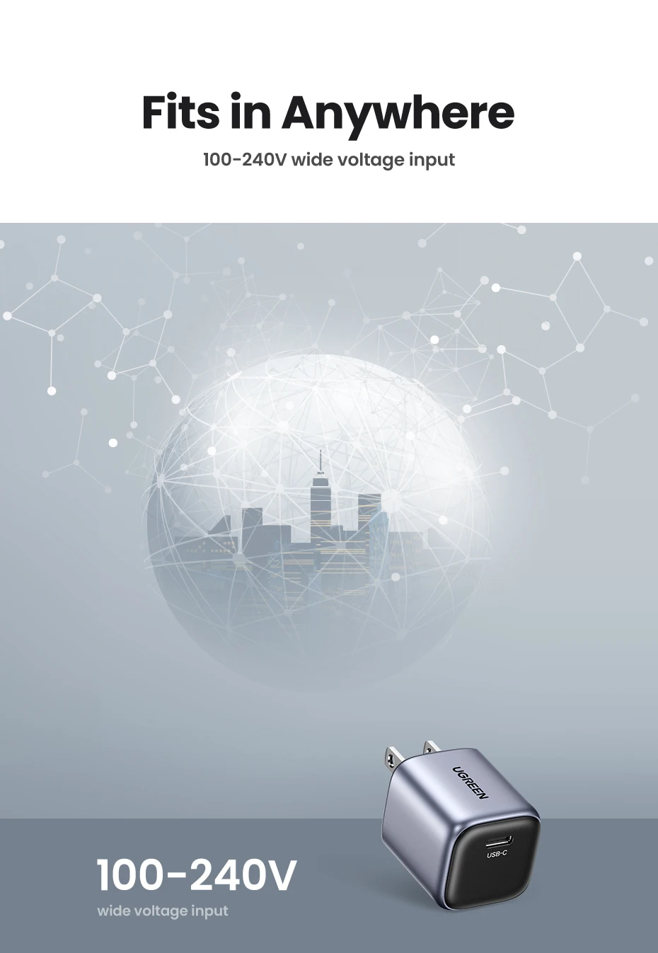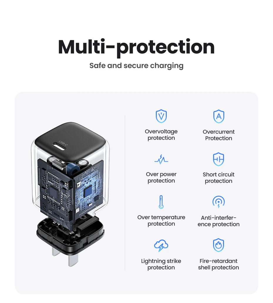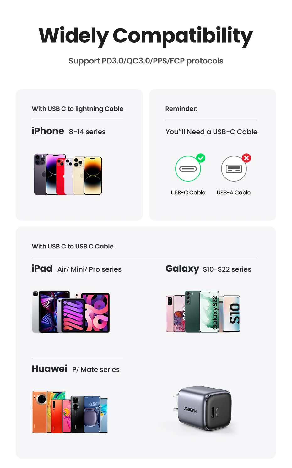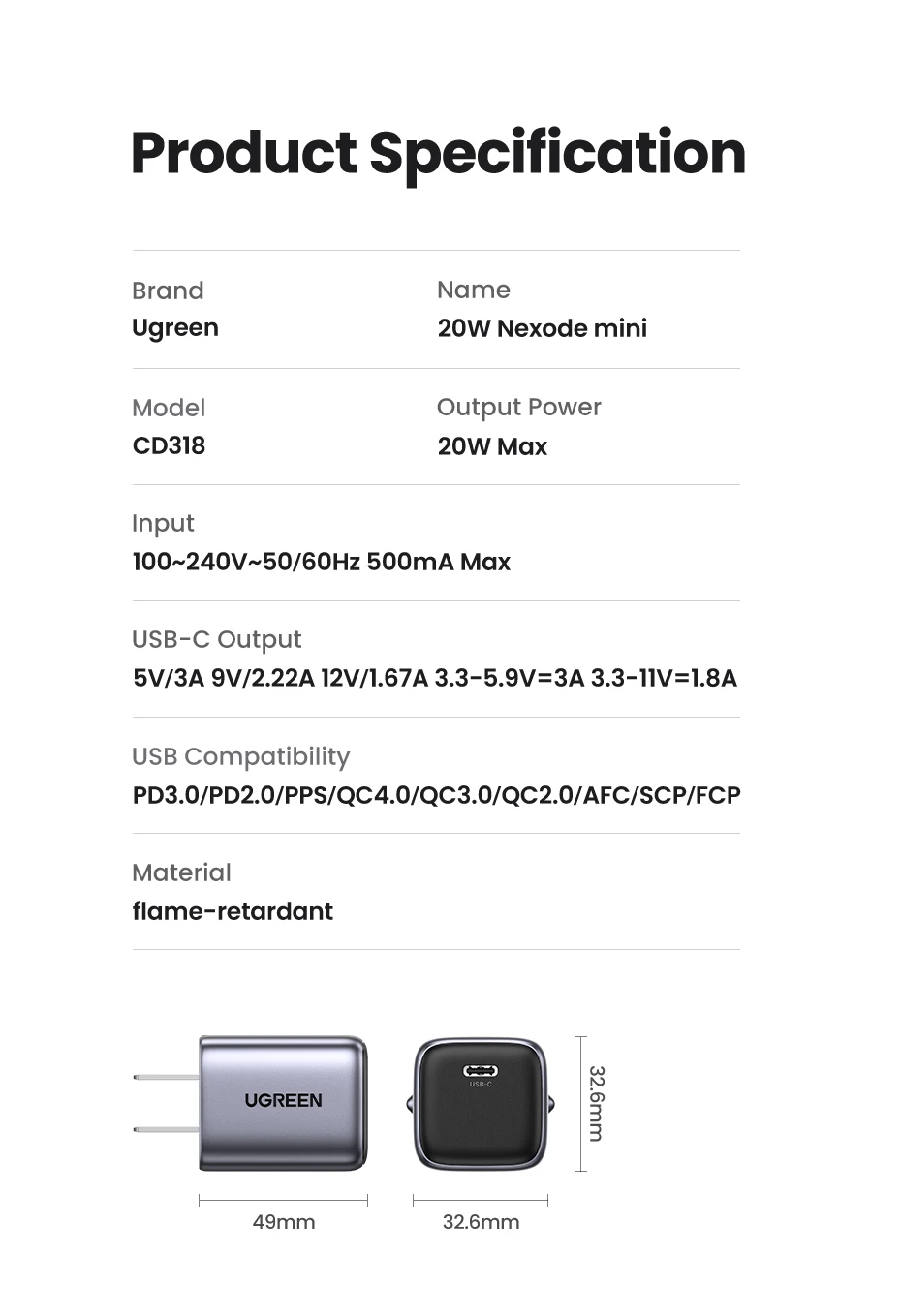 【US Plug】UGREEN 20W GaN Charger PD Fast Charger USB C PD3.0 QC3.0 Quick Charging For iPhone 15 14 Pro Samsung Xiaomi USB Charger