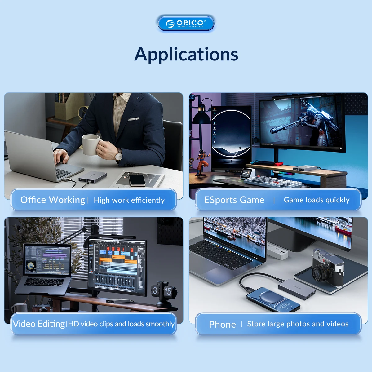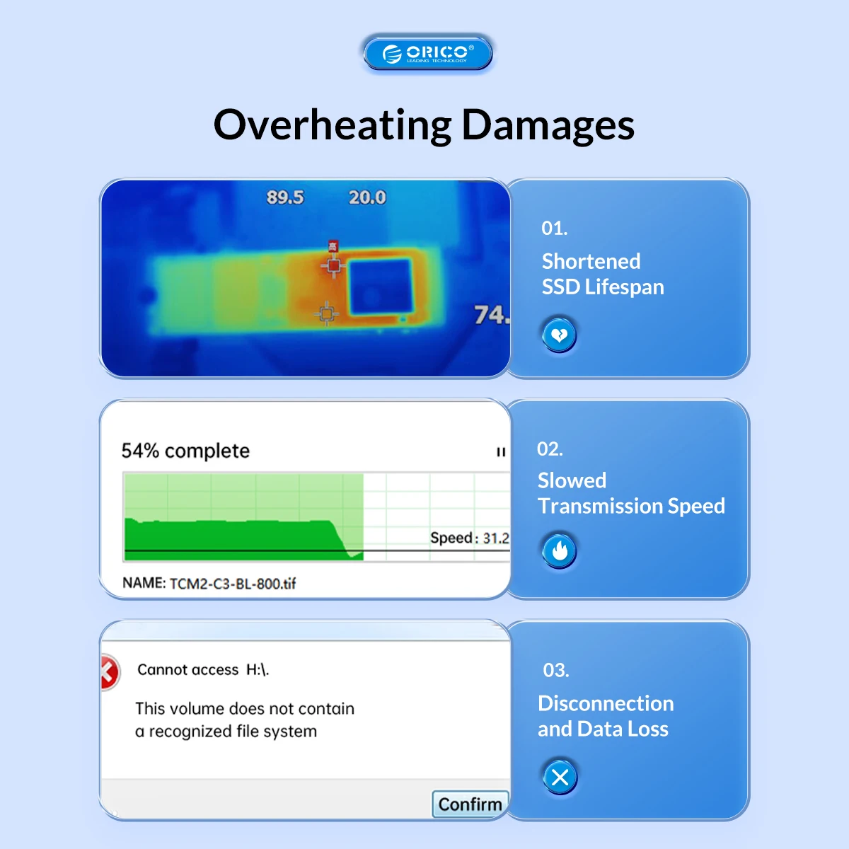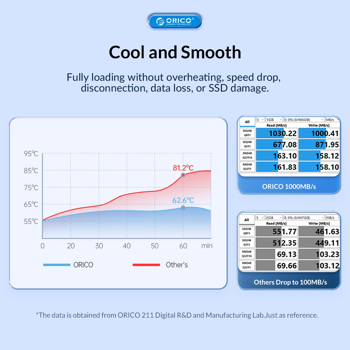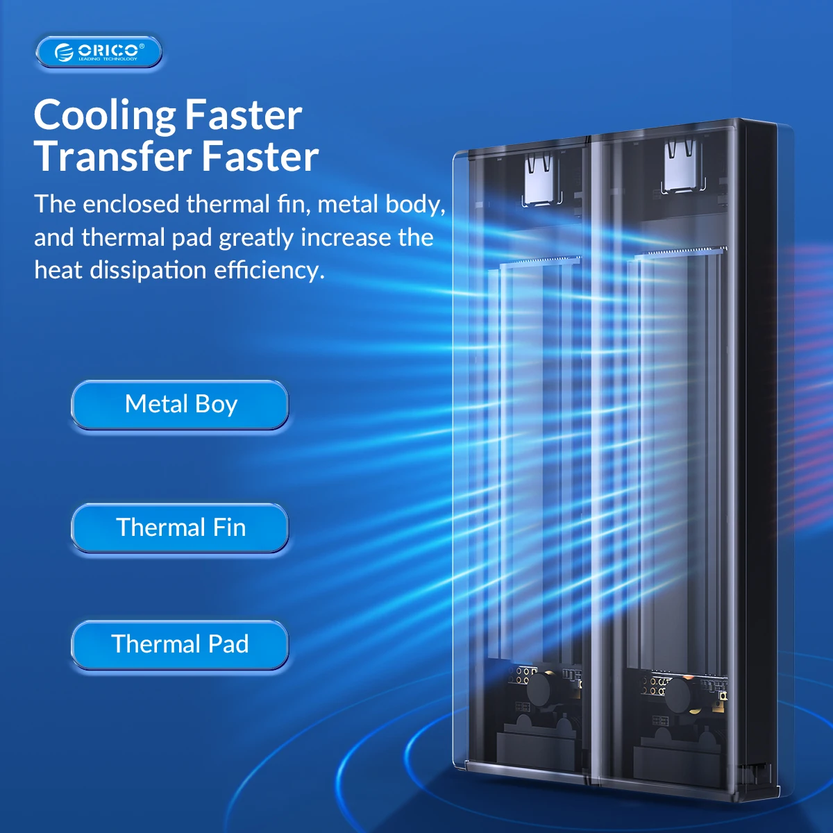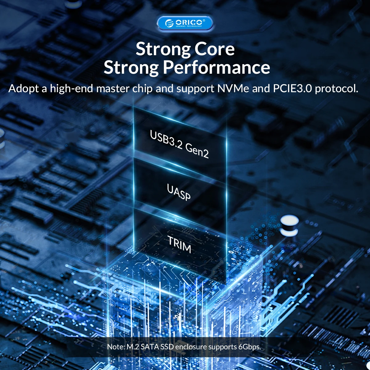 ORICO nvme ssd enclosure Using high-performance controller IC, supports UASP acceleration protocol and Trim, SMART functions, which can effectively improve SSD speed, protect data operation, and extend SSD life.