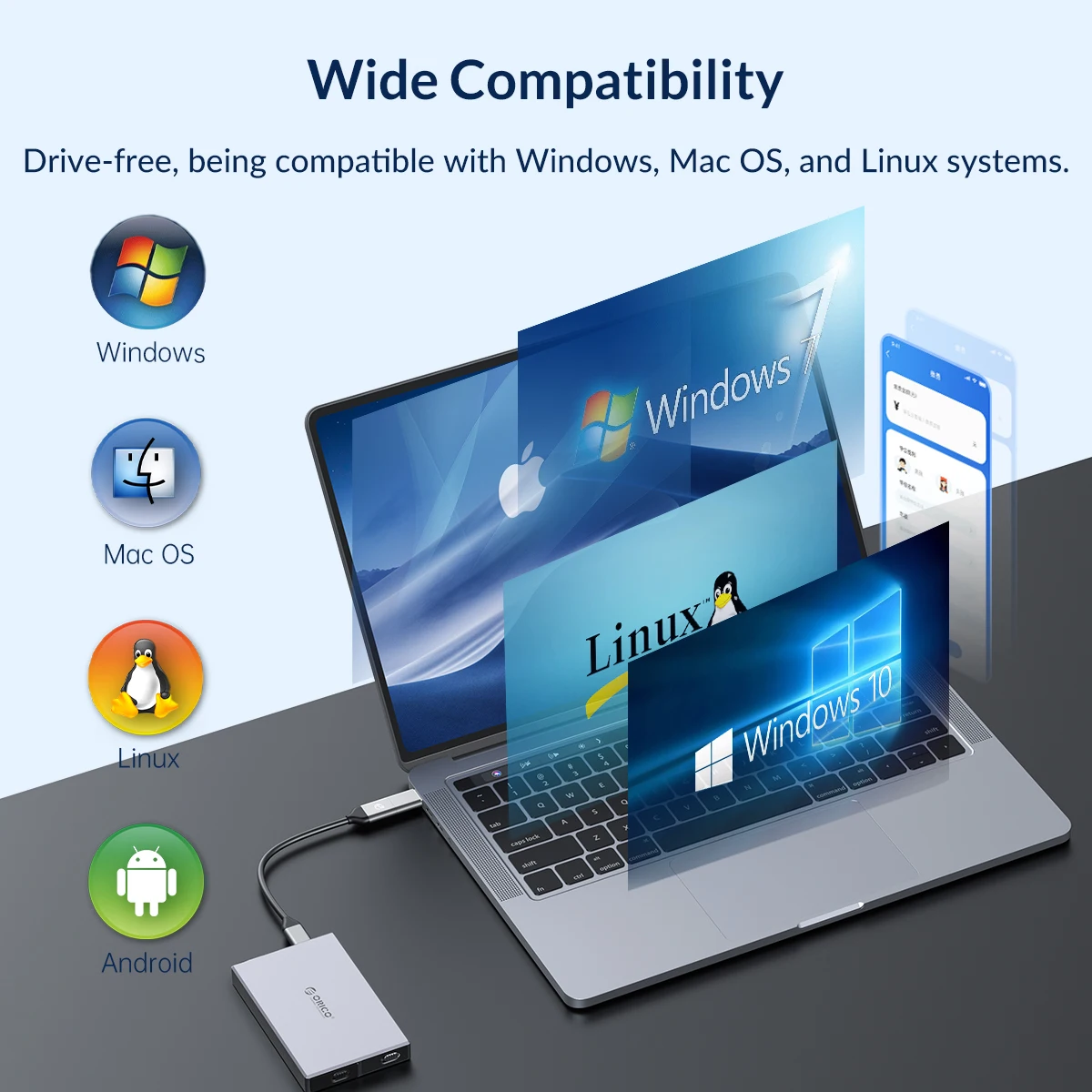 ORICO 10Gbps M.2 SSD Enclosure is compatible with M Key or M&B Key's 2230 2242 2260 2280 M.2 PCIe NVMe SSD. SSD enclosure support Windows, Mac OS and Linux. Plug and play, no additional drivers or software required.