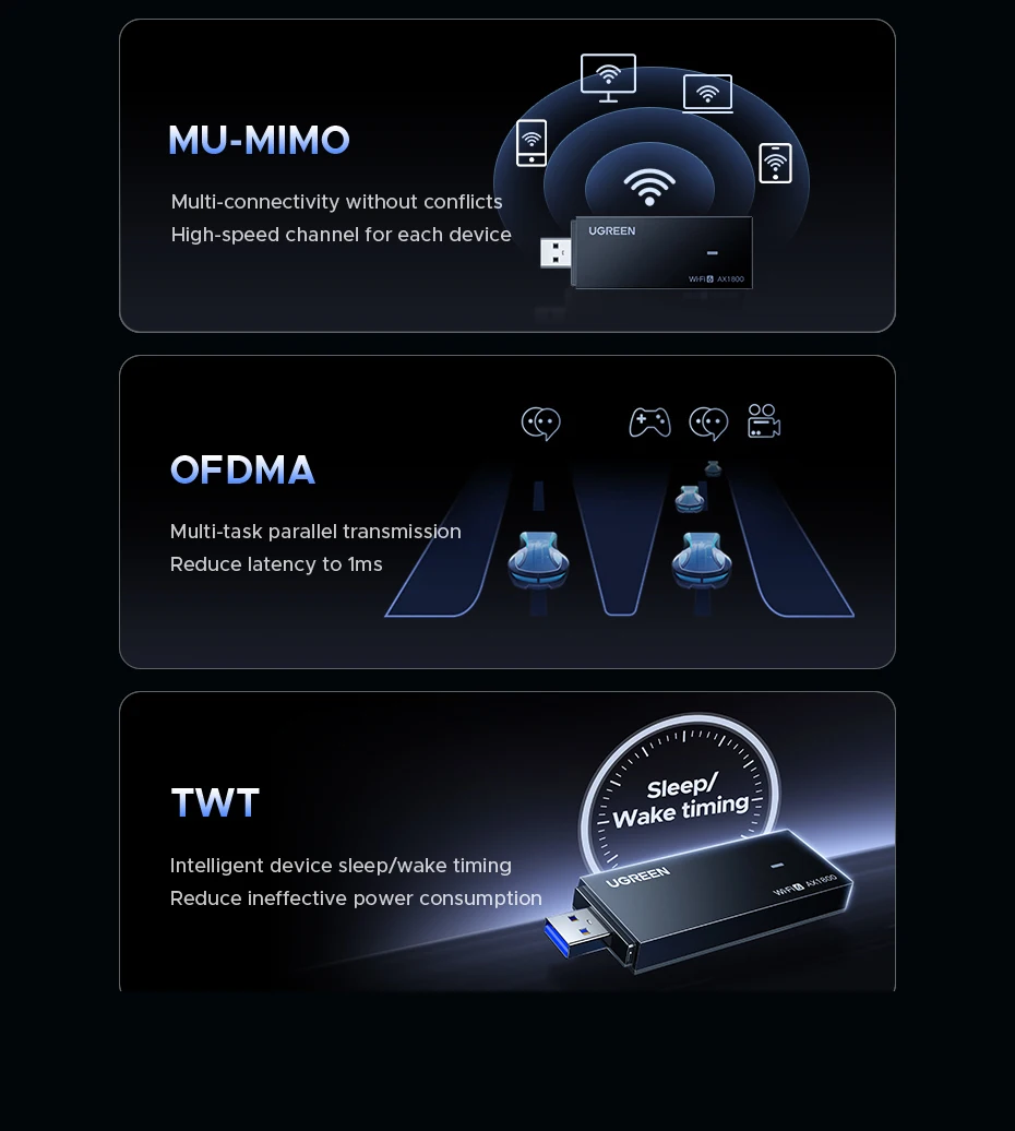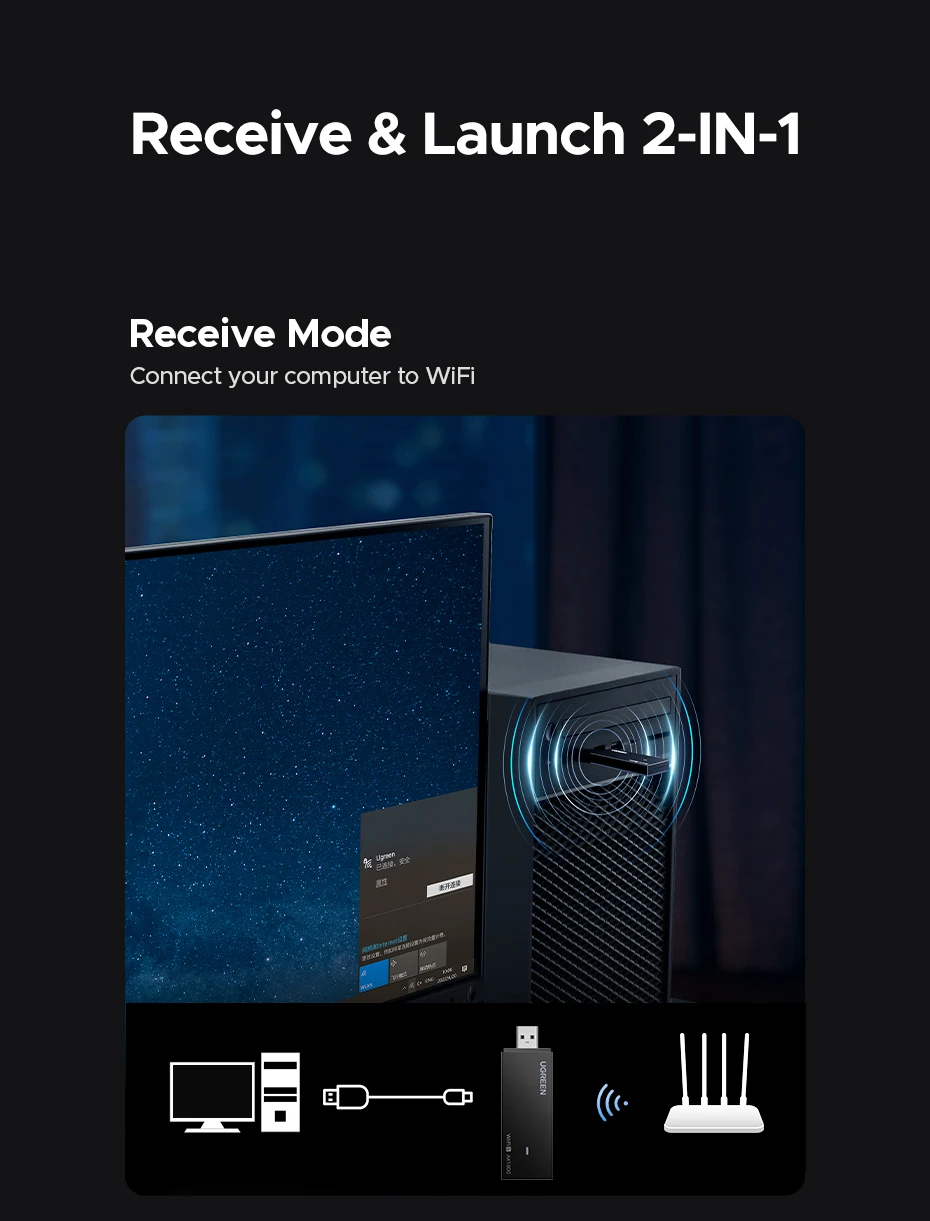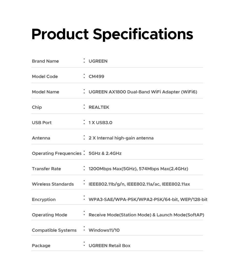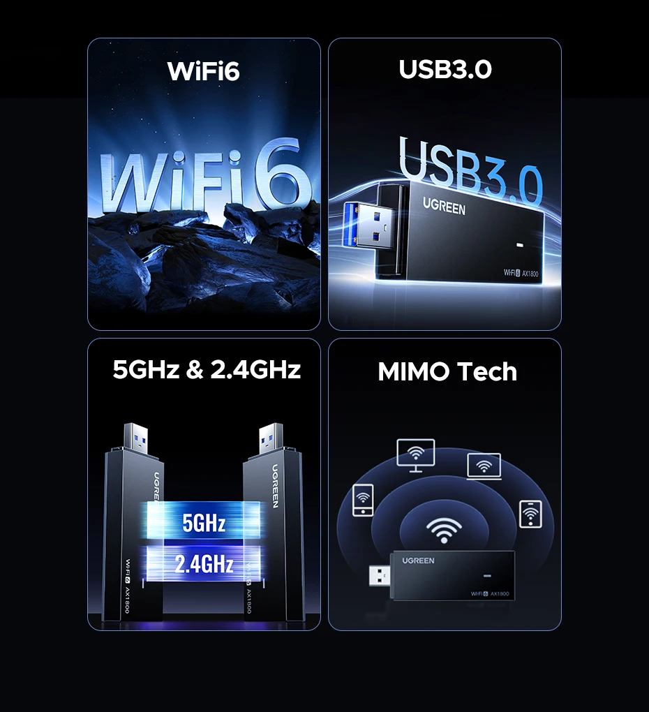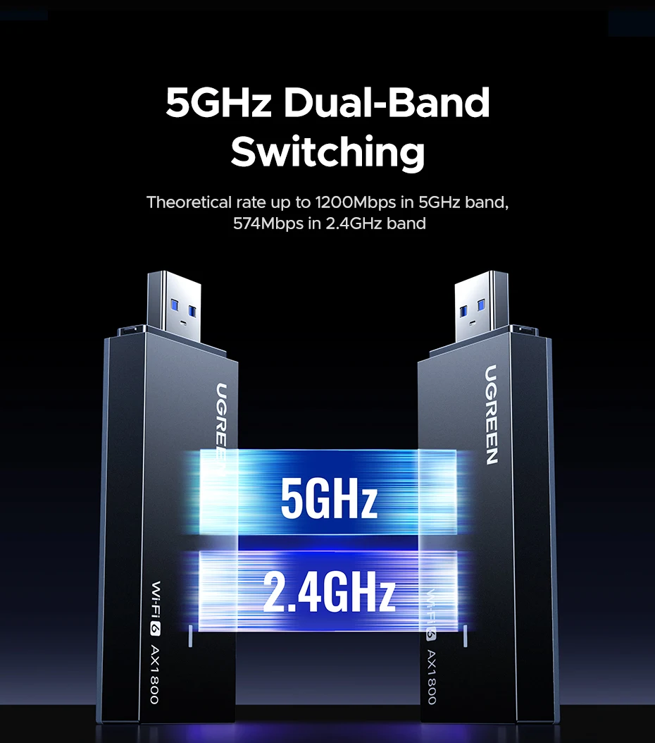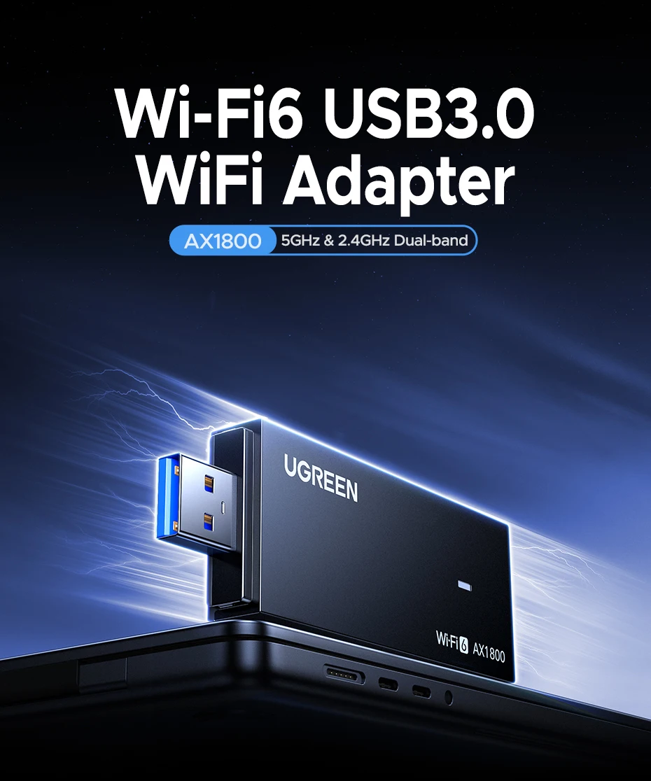 UGREEN WiFi Adapter AX1800 WiFi6 5G&2.4G Dual-band USB3.0 WiFi for PC Laptop Wifi Antenna USB Ethernet Receiver Network Card