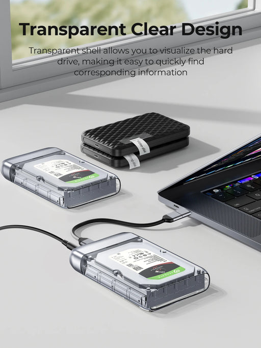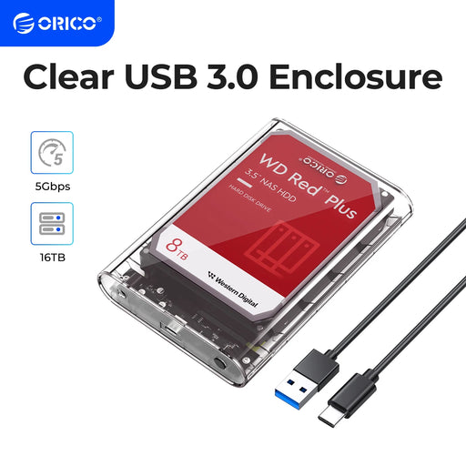 ORICO 3.5 inch Transparent Type-C 5Gbps Hard Drive Enclosure Metal HDD Case Support Auto Sleep for PC Laptop Notebook