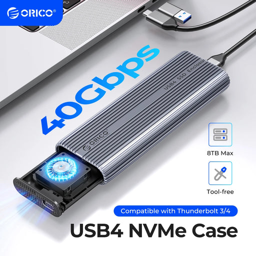ORICO 40Gbps USB4 M.2 SSD Enclosure 8TB with with Cooling Fan PCIe4.0 NVME Enclosure Aluminum Compatible Thunderbolt 3/4 for mac