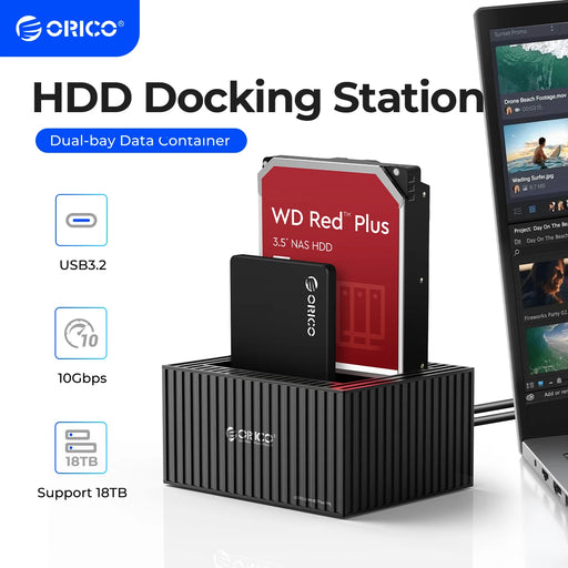 ORICO 3.5 Inch Dual-bay Type-C 5Gbps Hard Drive Docking Station for 2.5/3.5" HDD/SSD with 12V3A Power UASP Container Design
