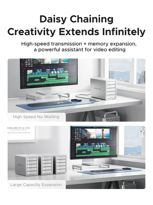 ORICO 3.5" Daisy Chain Type-C 10Gbps HDD Docking Station Support RAID 150W Power for Apple device 5Bay DAS Studio Series