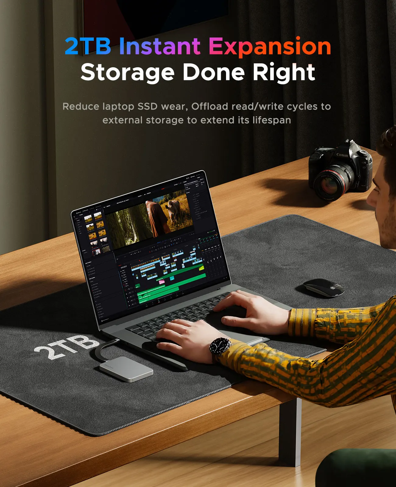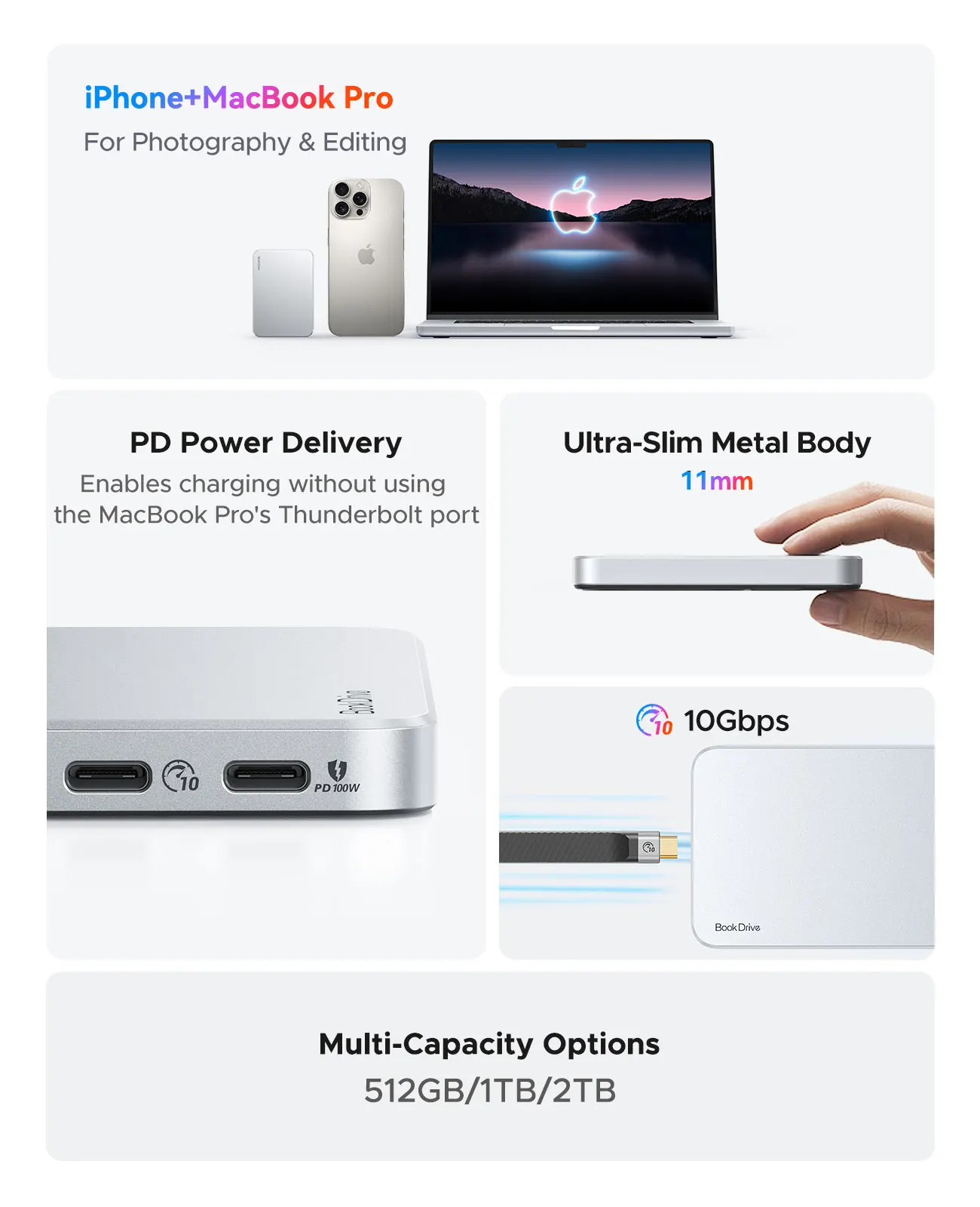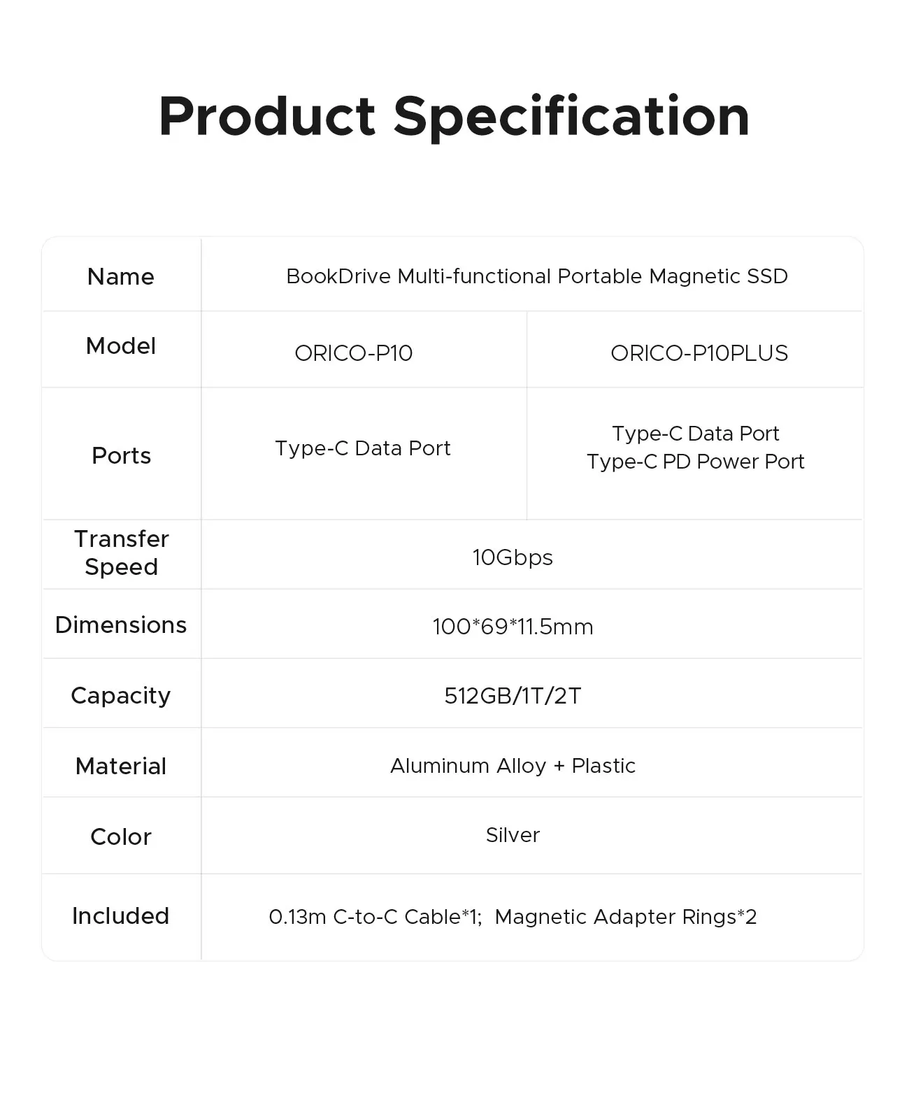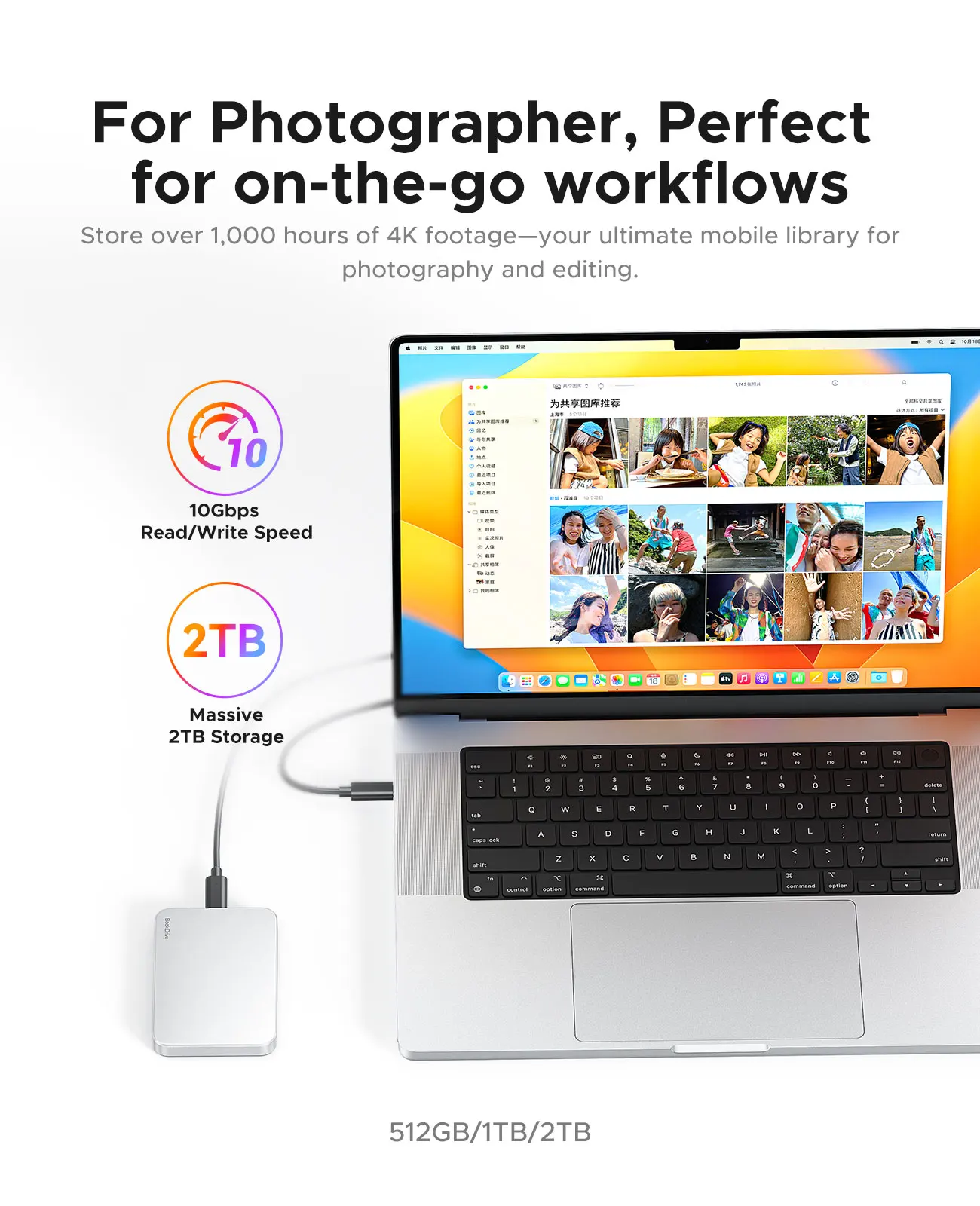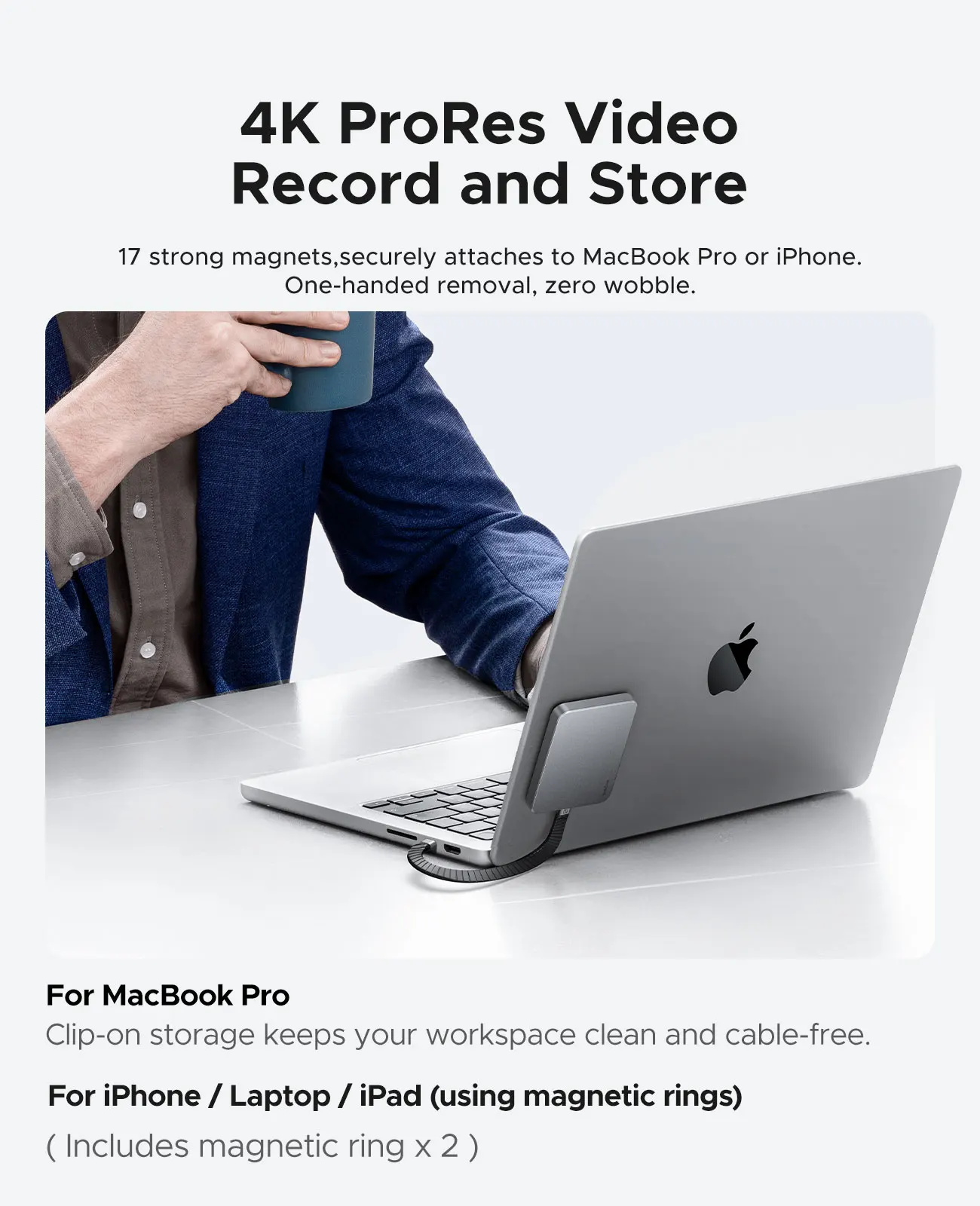 ORICO Magnetic External SSD for Macbook PRO PD100W Charging 4K ProRes HDR, 1000MB/s USB 3.2 External Drive for Tablets Laptops