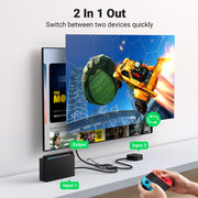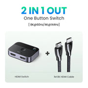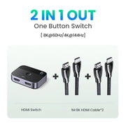 This 8K HDMI switch is your solution which seamlessly connects 2 video sources to 1 display (DOES NOT support 1 in 2 out).
