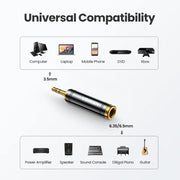UGREEN 3.5mm to 6.5mm 6.35mm 1/4 Adapter Gold Plated Pure Copper 6.5mm Male to AUX Female to Jack Mono Adapter Audio Connector